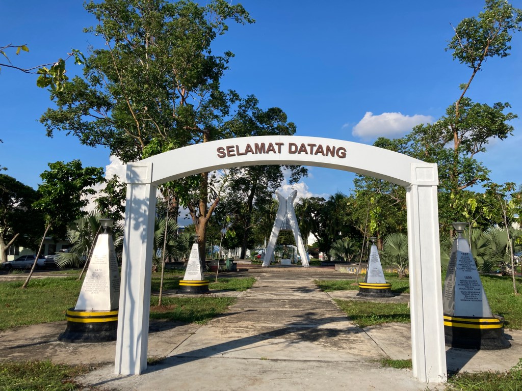 一个坐落在市区的兵士像(对抗纪念碑),旁边有一个小小的游乐措施供小朋友玩。兵士像左右两旁有记载着斗湖的历史,但是马来语。下面就让我翻译一下左右两旁的历史。