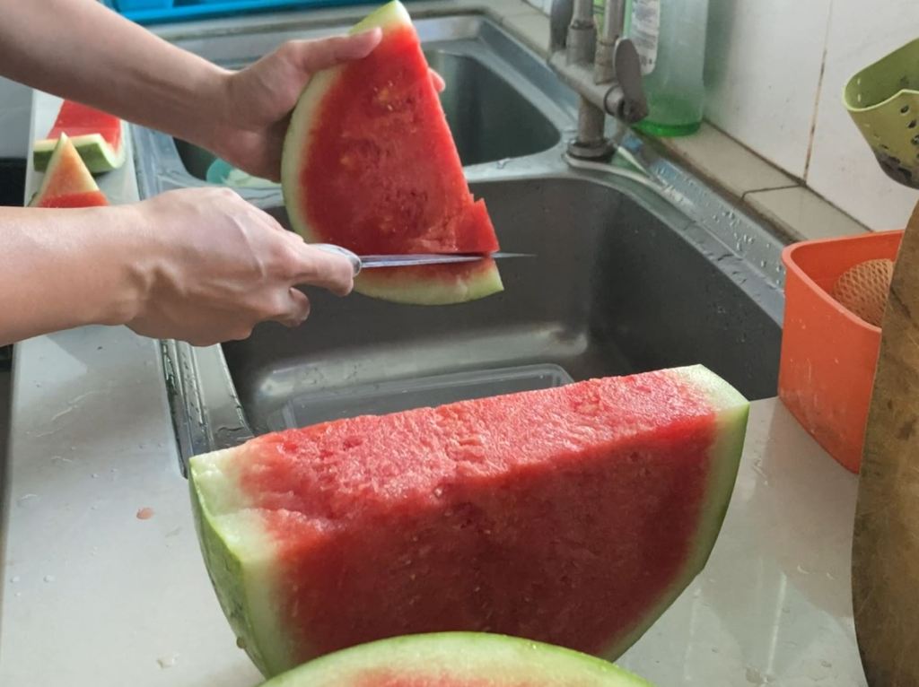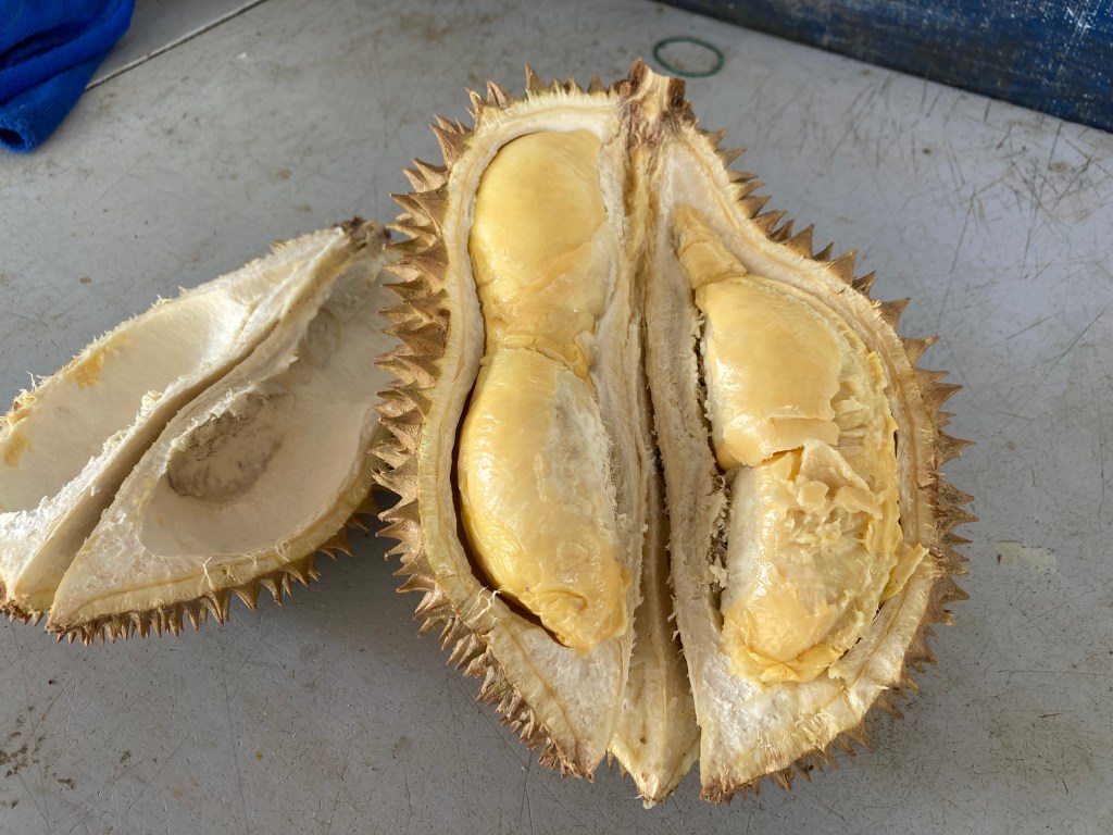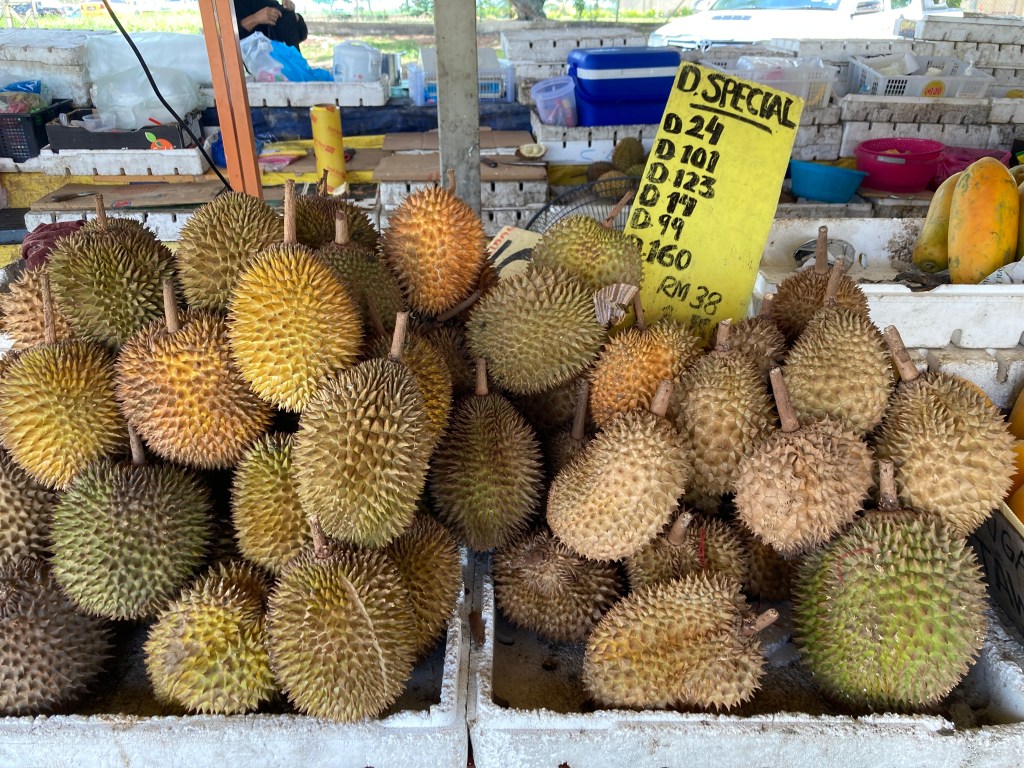 这个就是水果之王榴莲。小的时候感觉很苦不会吃,当你会吃的时候就戒不掉,会上瘾的。很多品种,D24,D99,Sarawak King,Musang King 等等。感觉那些品种都是凭空而出的。我买了一个 Sarawak King 一公斤30块,1.7公斤算50块。 感觉榴莲好像越来越贵了。然后还买了一个西瓜20块,1公斤4块。只是买了两个水果花了70块,本地水果都越来越不便宜了。