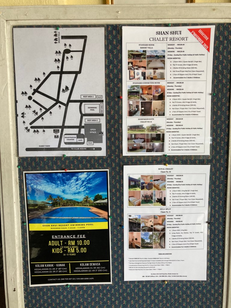 在右手边就是度假屋,从钟点房3个小时为50块马币,平日一天房为100块马币,假日一天为120块马币。在这里留宿提供卡拉OK,泳池,烧烤,这里也可以点餐。这里有多种类的房间供选择,建议可以先打电话来预约