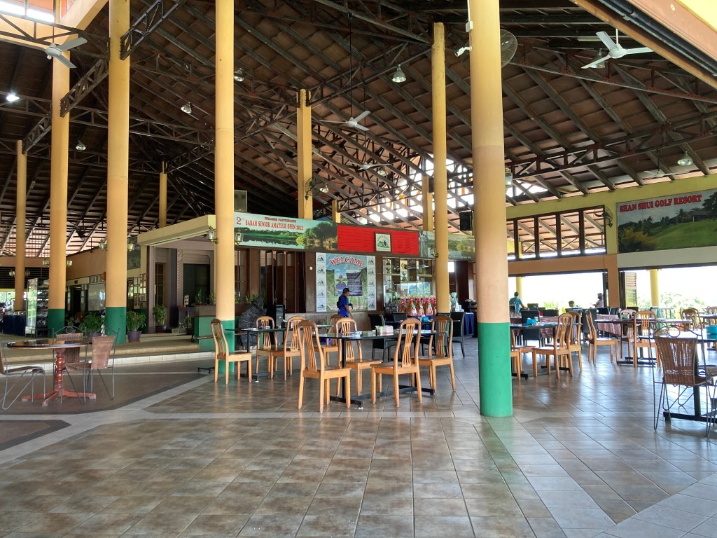 从路口直直进就是高尔夫球场了,这里也有卖高尔夫球用品如衣服,帽子,高尔夫球等等。然后还有一个餐饮厅,可以边吃东西边欣赏高尔夫球场,还有会议室等