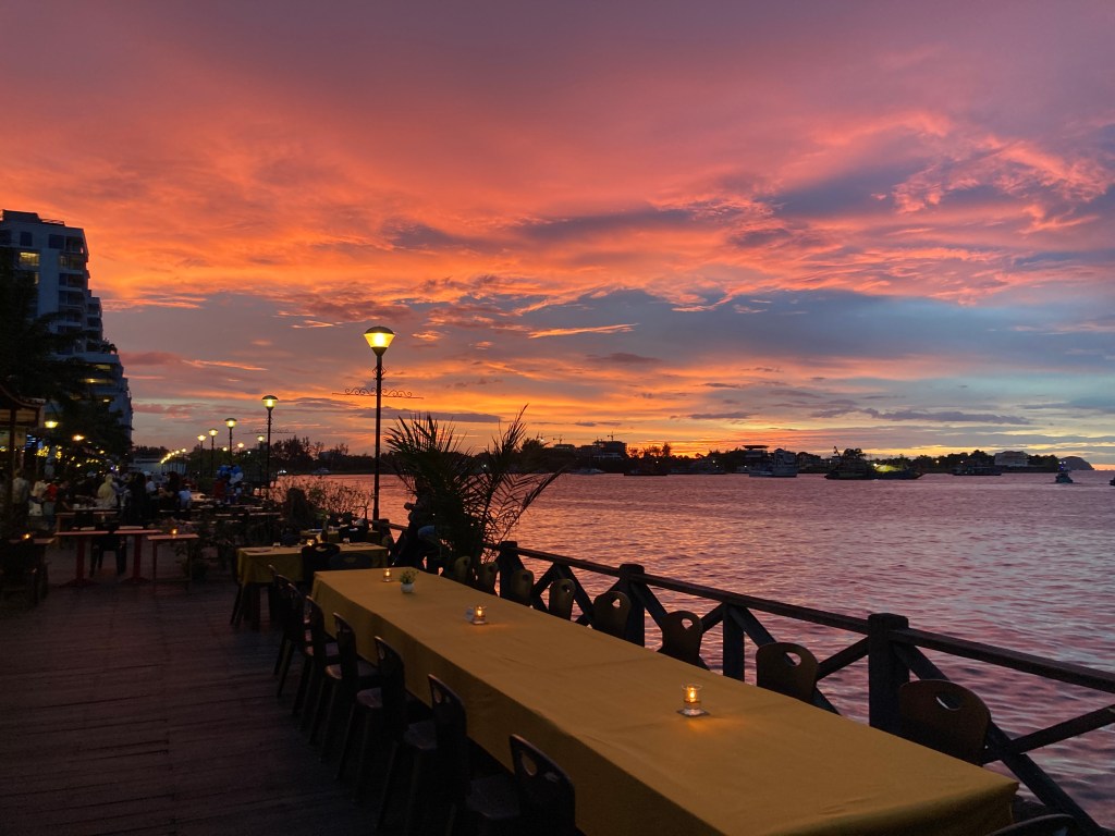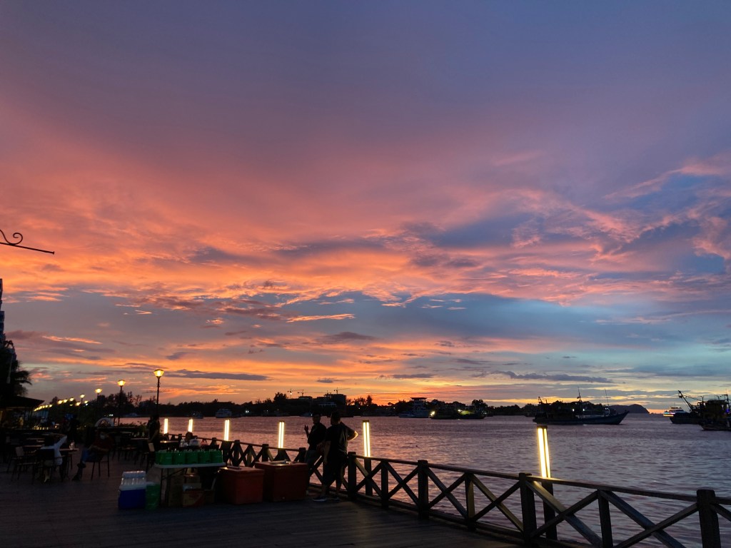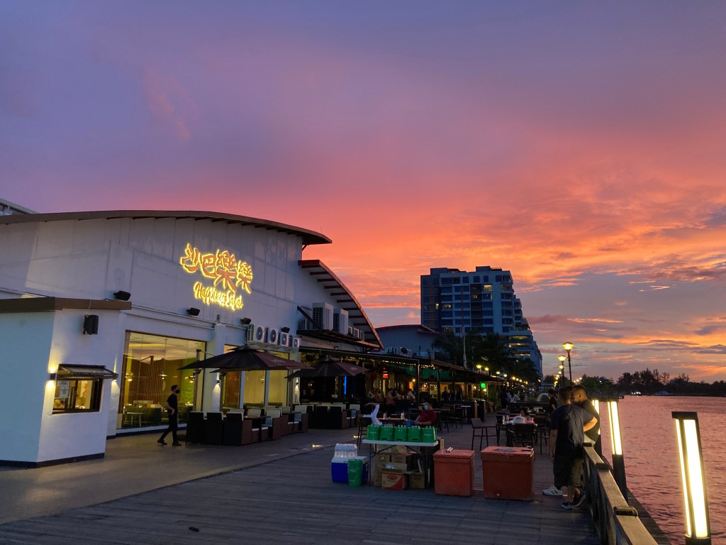 Water front 位于亚庇市中心, 在太平洋购物中心后面,从太平洋购物中心步行约200米就到了。这里有北方印度餐,意大利餐,泰国餐,中餐等等。这里也有酒吧,爱尔兰酒吧,夜店等等。到了旁晚日落时间很多游客喜欢来这里消费,主要还是气氛和观看日落。这里的消费比外面一般的餐厅都来的贵,大约贵3倍左右甚至更高。如果是开车来的话这里也有收费停车站,停车费也是很贵。跨年倒数的时候停车费10快马币,平时日子也要6快马币。