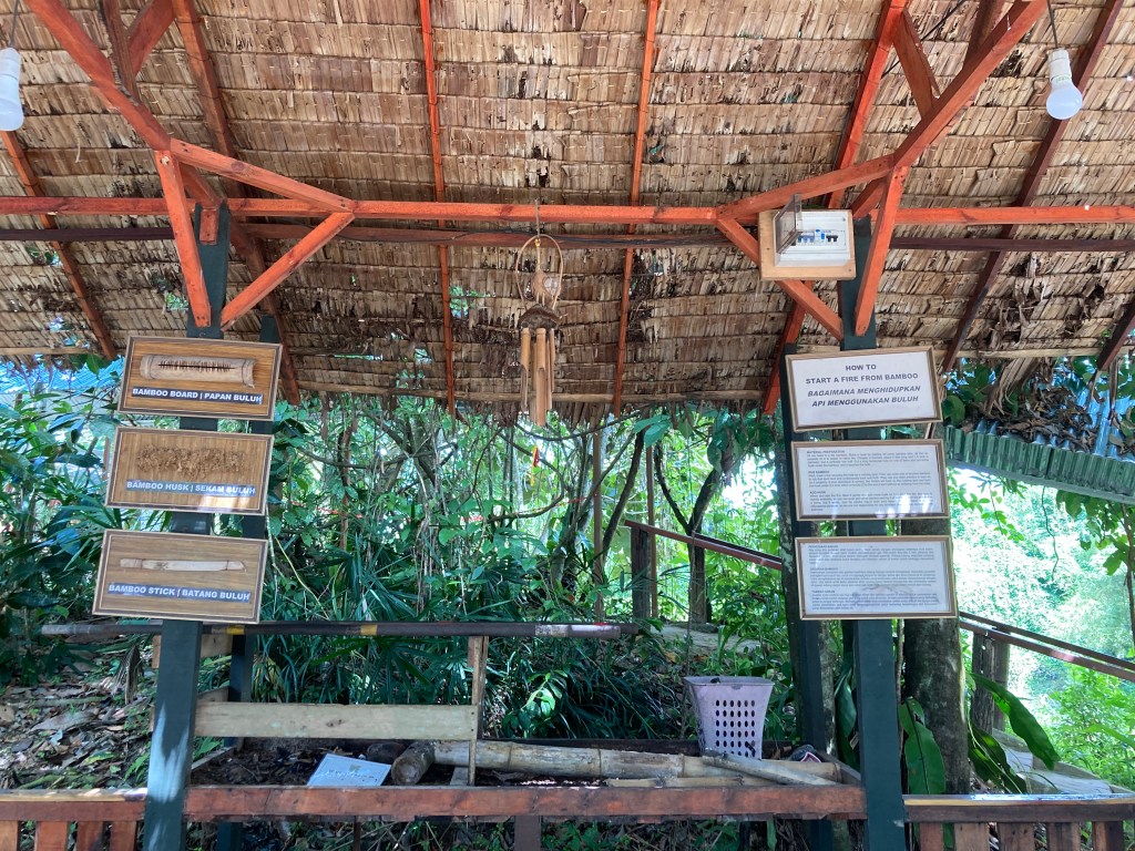参观美食过后导游就示范怎么用竹筒取火,然后也让我们体验怎么样用竹筒取火,还有介绍当时他们生活的一些工具如煮饭烧菜的工具,缝纫的工具,酿酒的工具等等。接下来还让我们体验了吹管,在很久以前他们都是用吹管来猎物,在针口处抹上了麻醉药,导游还示范了如何连续发三枚针。然后就体验当时的娱乐就是现在我们所讲的踩高跷,看起来容易, 但是完起来有一定的难度,可是导游做了很好的示范。最后就参观原住民当时的乐器,然后还有的的族群分布图。旅程结束感觉导游很用心的话可以给5块马币的消费, 但是不给也没有关系, 没有强制。
