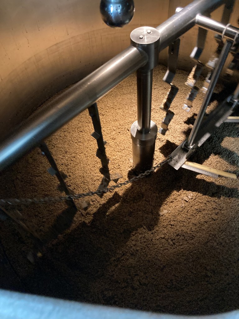 第二步,把研磨后的大麦运到糊化锅里。在这里大麦和水加热后沸腾,然后送到煮沸锅。在被送到煮沸锅之前,在这里去除大麦皮壳,并加入酒花和糖