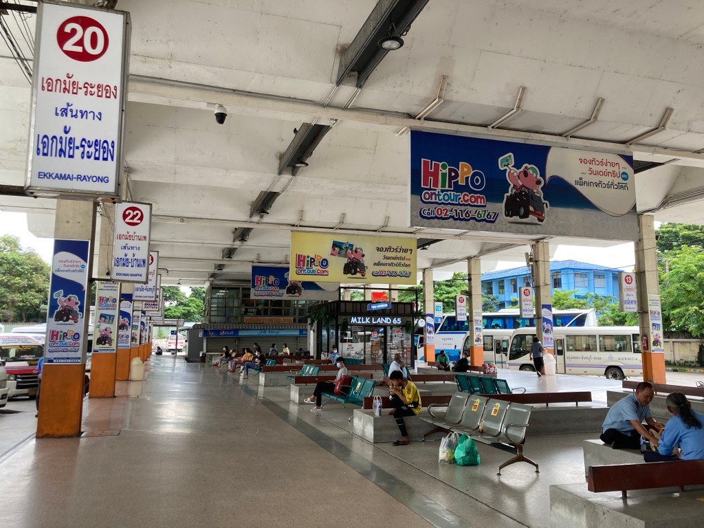 乘坐BTS绿色线到达 Ekkamai 站,车站就在旁边,全天候都有车,不需要提早买票