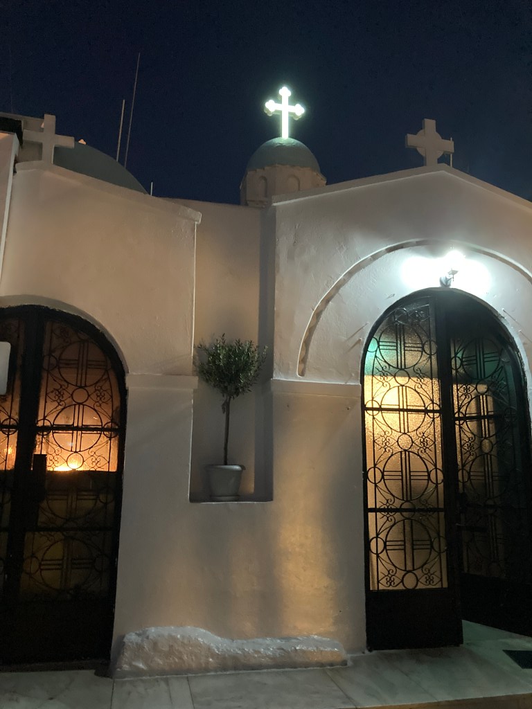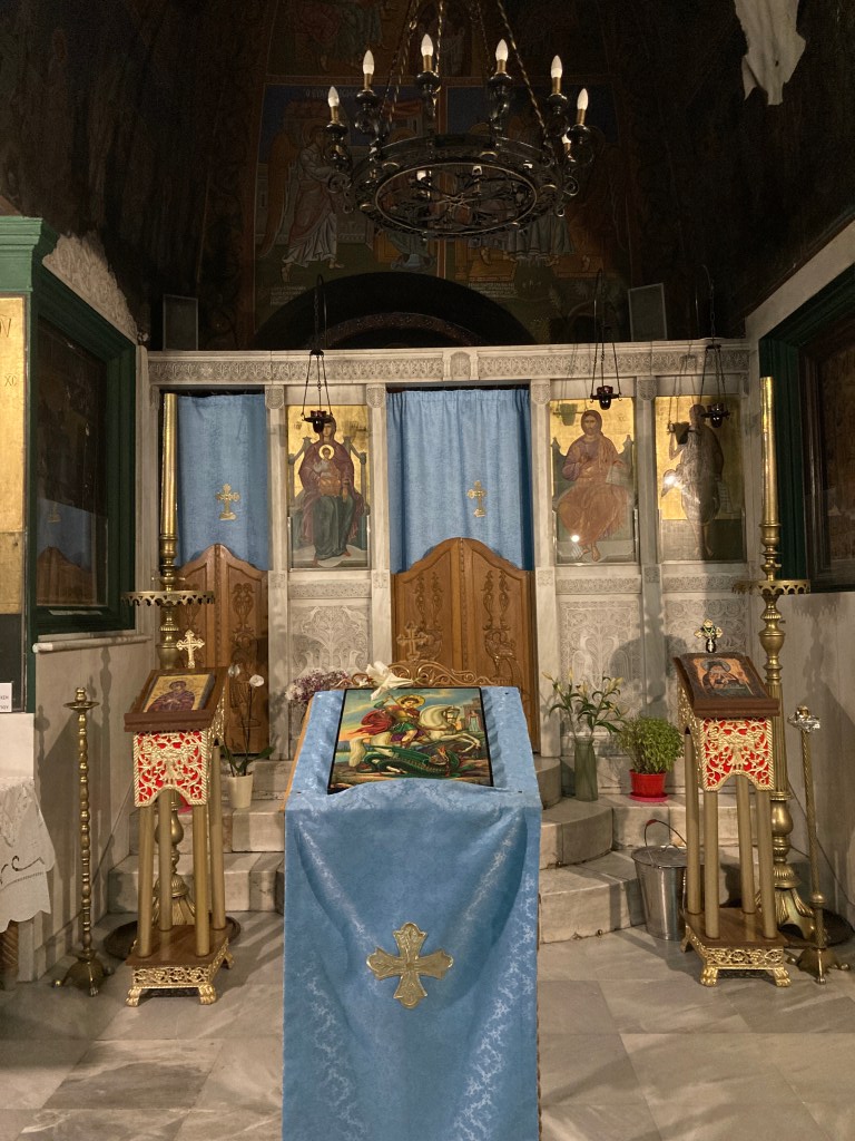 它也被称为 Agios Geórgios 教堂,建在一座古老的拜占庭教堂的遗址上,该教堂献给 Profítis Ilías(先知以利亚)