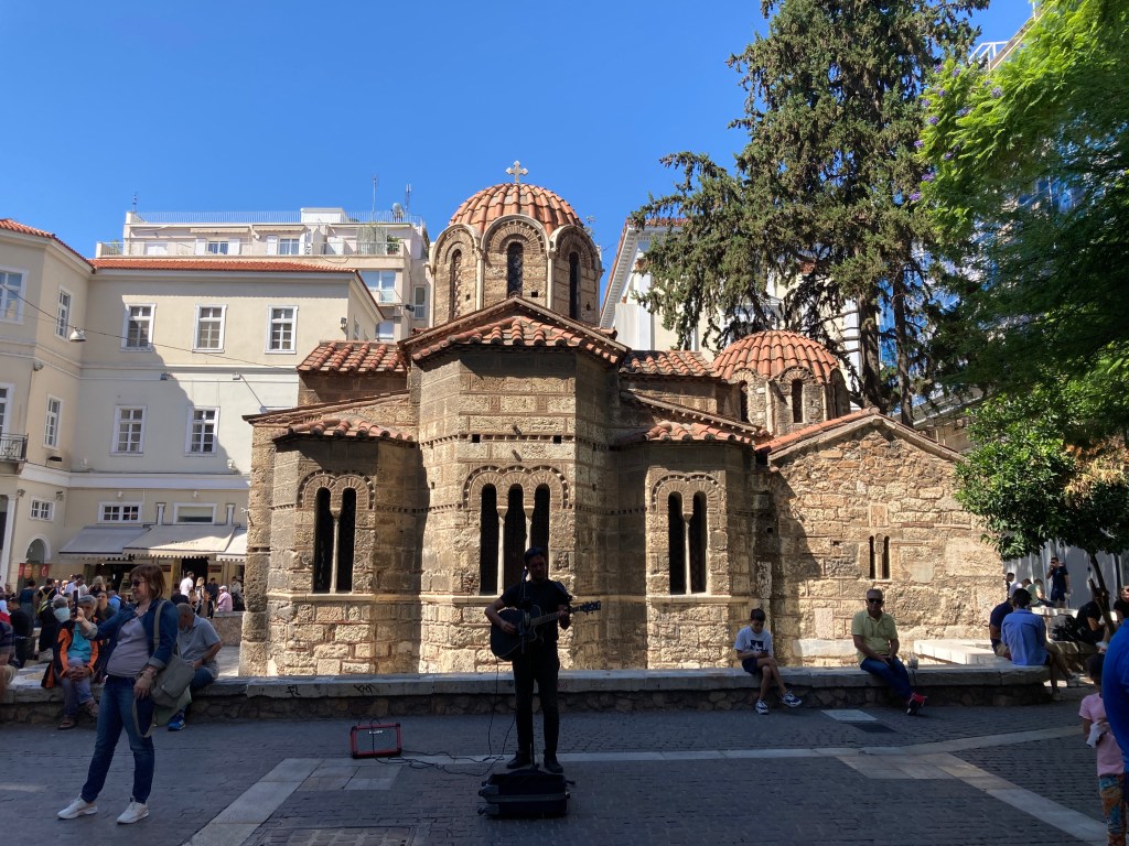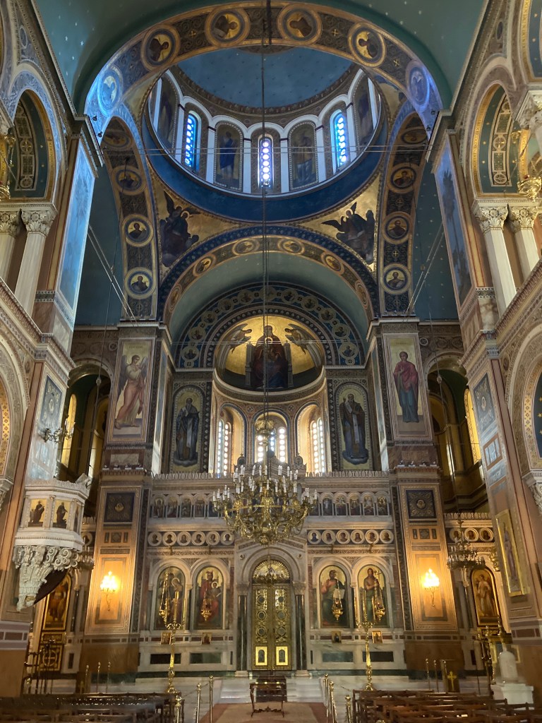 教堂装饰有许多圣像和壁画,钟楼享有雅典卫城和帕台农神庙的壮丽景色