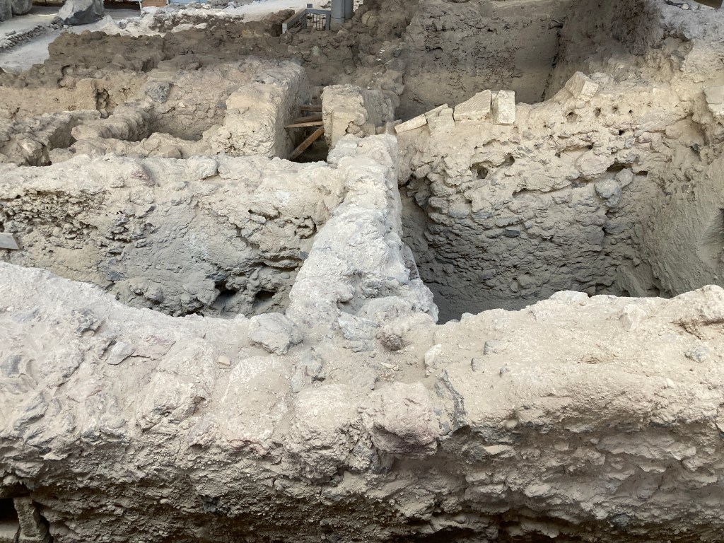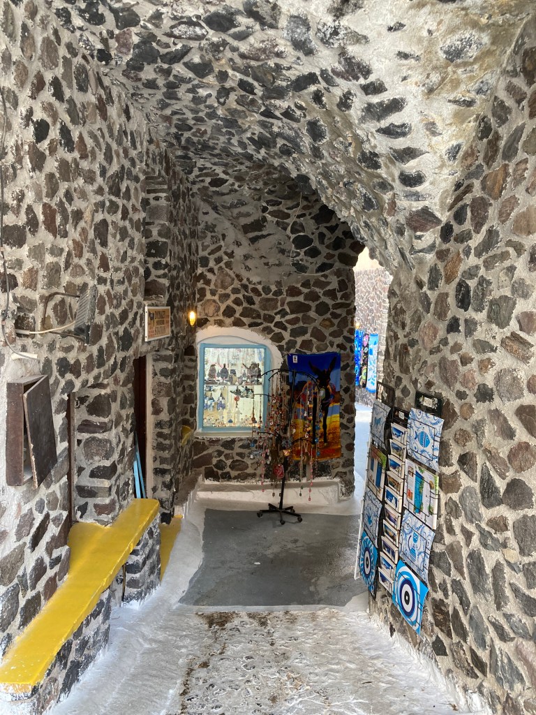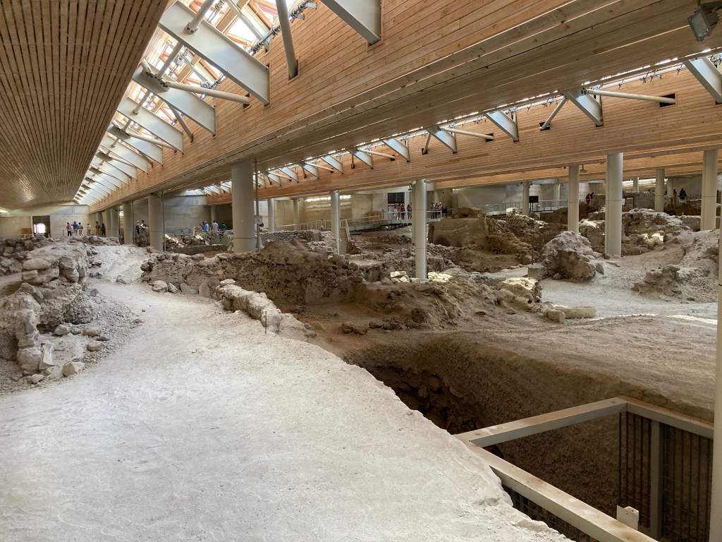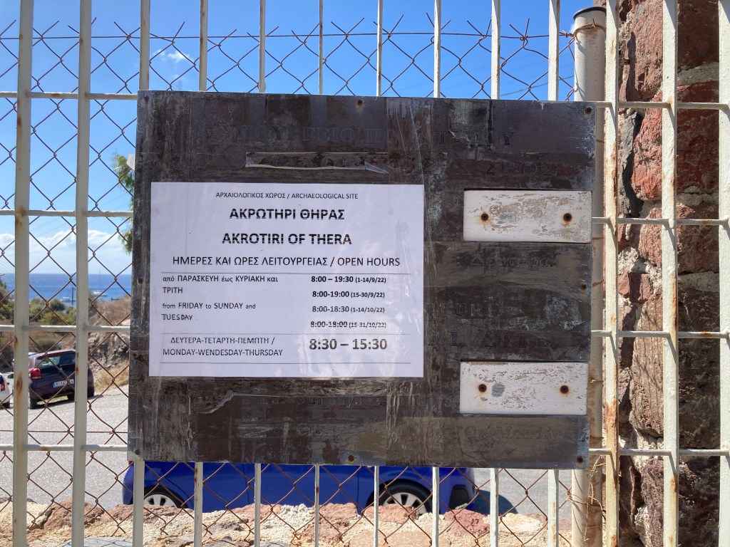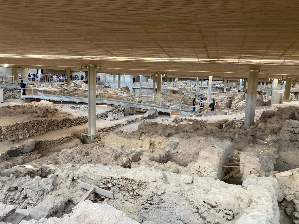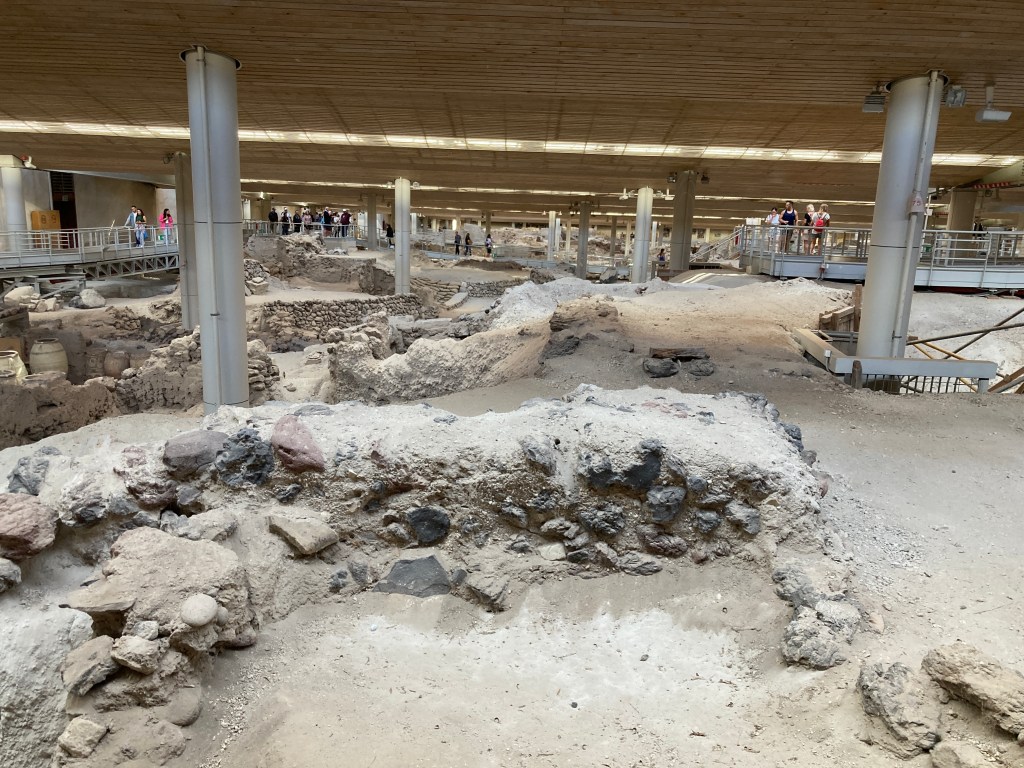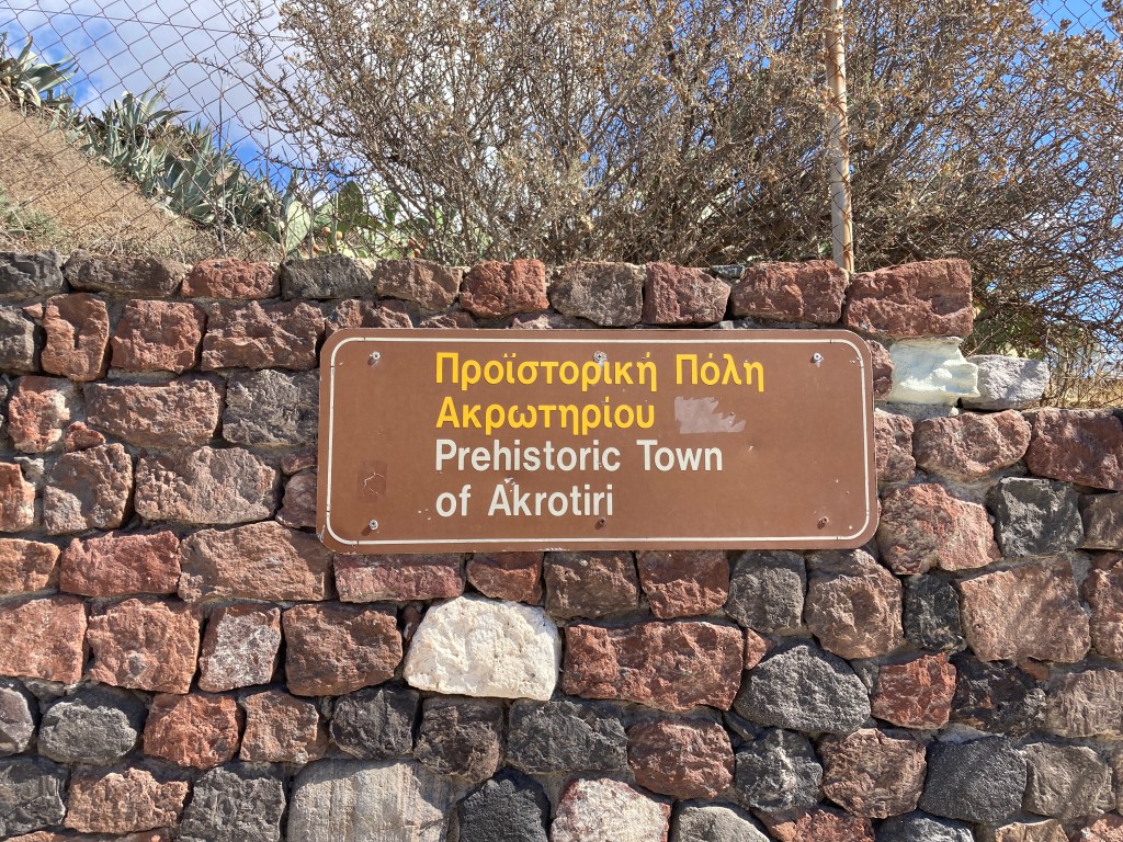 在公交车正对面就是阿克罗蒂里(史前城市)博物馆 “Akrotiri (Prehistoric City)” museum。该城市在公元前16世纪左右,在 Theran 火上喷发中被摧毁,并被埋在火山灰中,这里保存着精美的壁画以及许多物品和艺术品。Akrotiri 自1967年在圣托里尼岛的早期挖掘之后被挖掘出来。如果你对考古不是很有兴趣我觉得不是很值得看,对我这个完全不懂考古的来说全都是石头