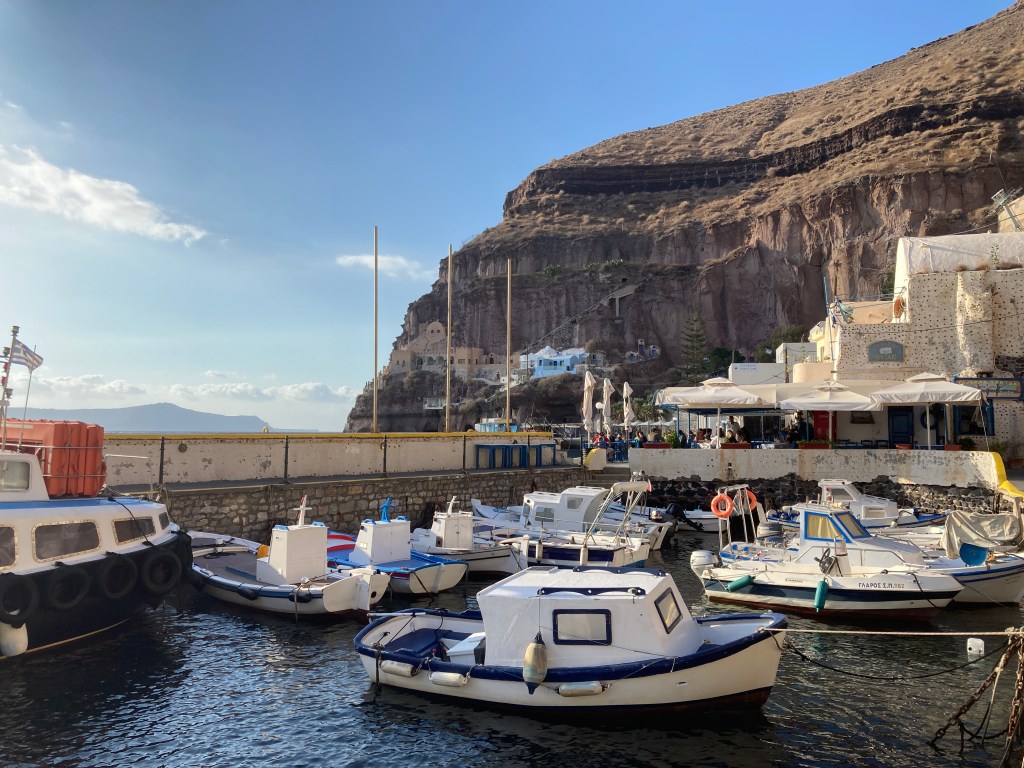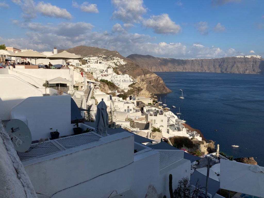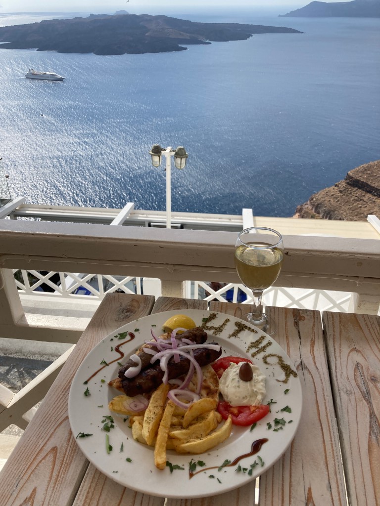 这里其实和 Oia 很像,只是没有蓝顶教堂而已,午饭时间到了,当然找一个可以看到美美风景的餐厅享用