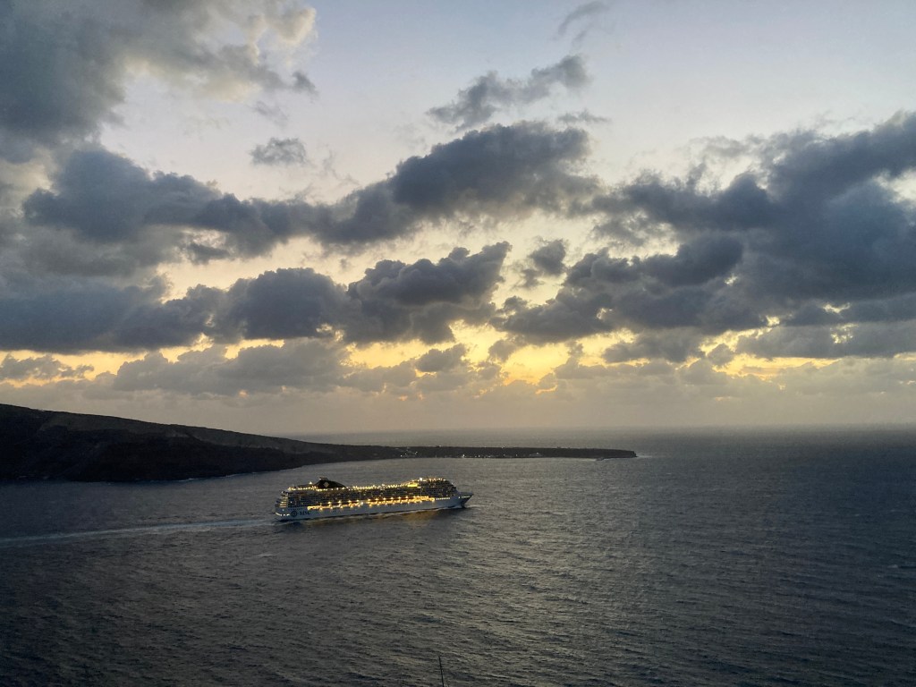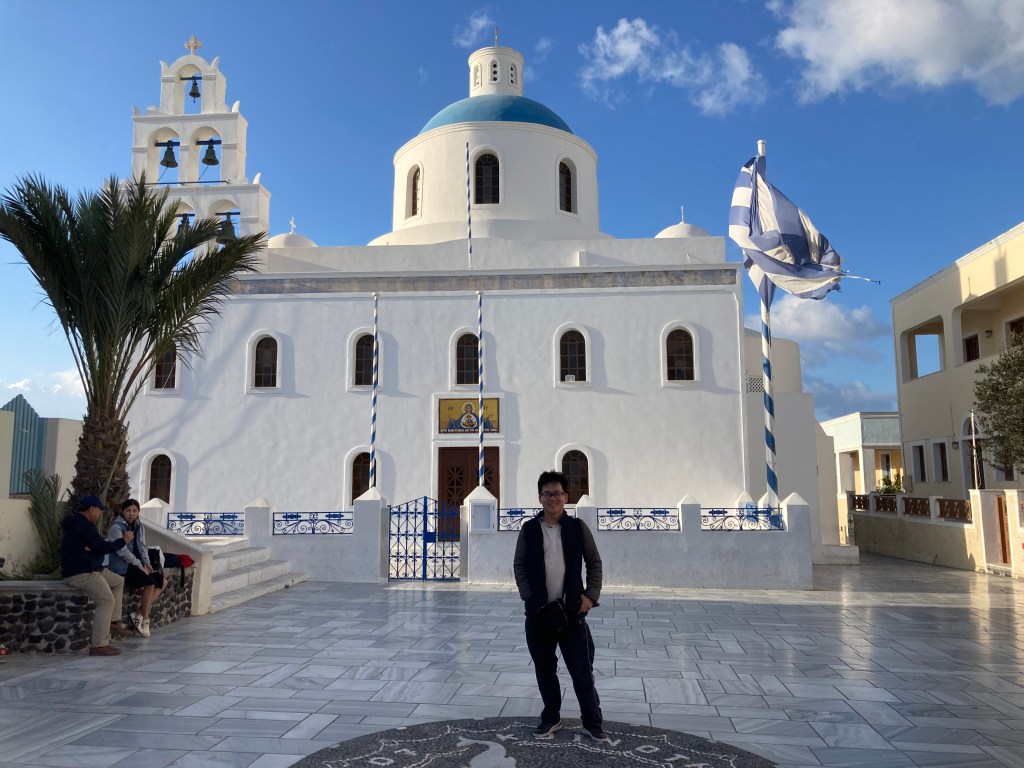 “爱情海” 一个每次听到就觉得很浪漫的地方,其实是“爱琴海”,不是“爱情海”。每次看到希腊的相片就是面向爱琴海的蓝色屋顶的教堂,感觉就是漂亮和浪漫。于是结束雅典的旅程马上前往 Santorini “圣托里尼“ 。圣托里尼是一个岛,需要坐船货坐飞机才能抵达的,由于船票有点贵,大约在75欧元左右,所以决定乘搭 飞机前往“圣托里尼”。半夜12点抵达“圣托里尼“机场,”圣托里尼“的风很大,天气超冷,出了机场选了一辆私家霸王车送岛酒店,距离才3公里开价25欧元, 如果是计程车的话更贵,开价35欧元,感觉圣托里尼的物价比雅典更来的贵