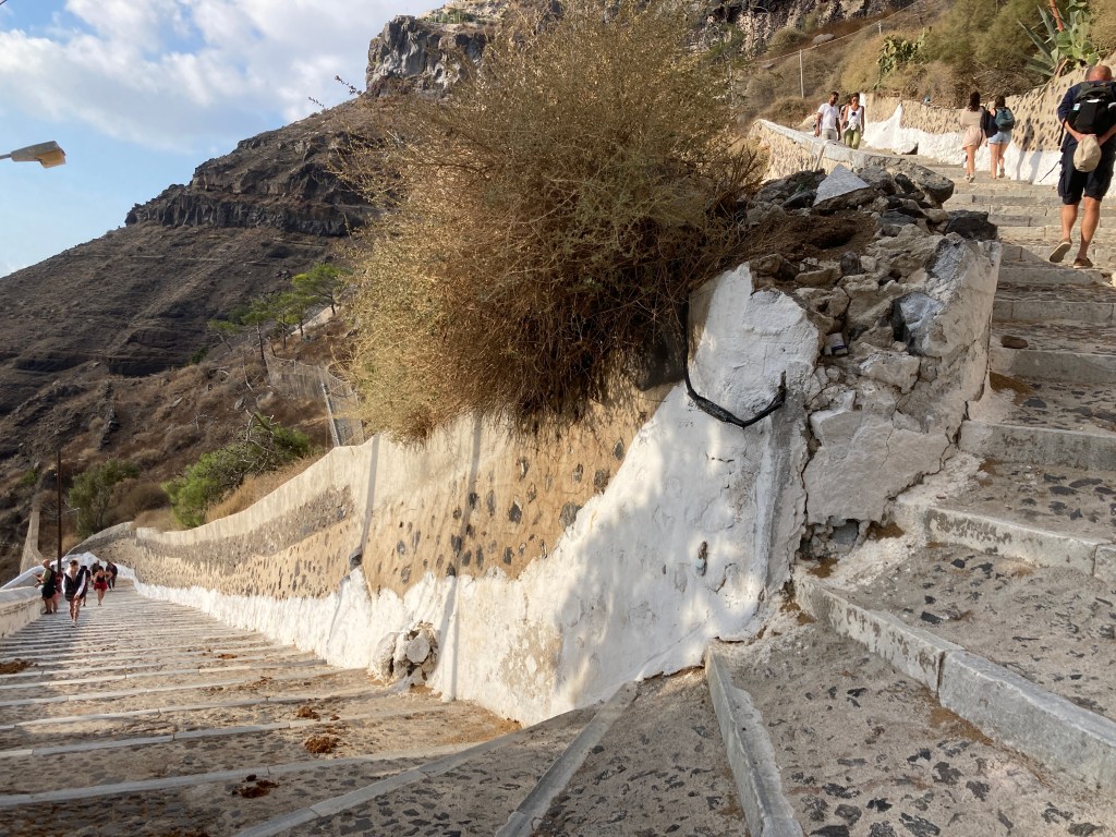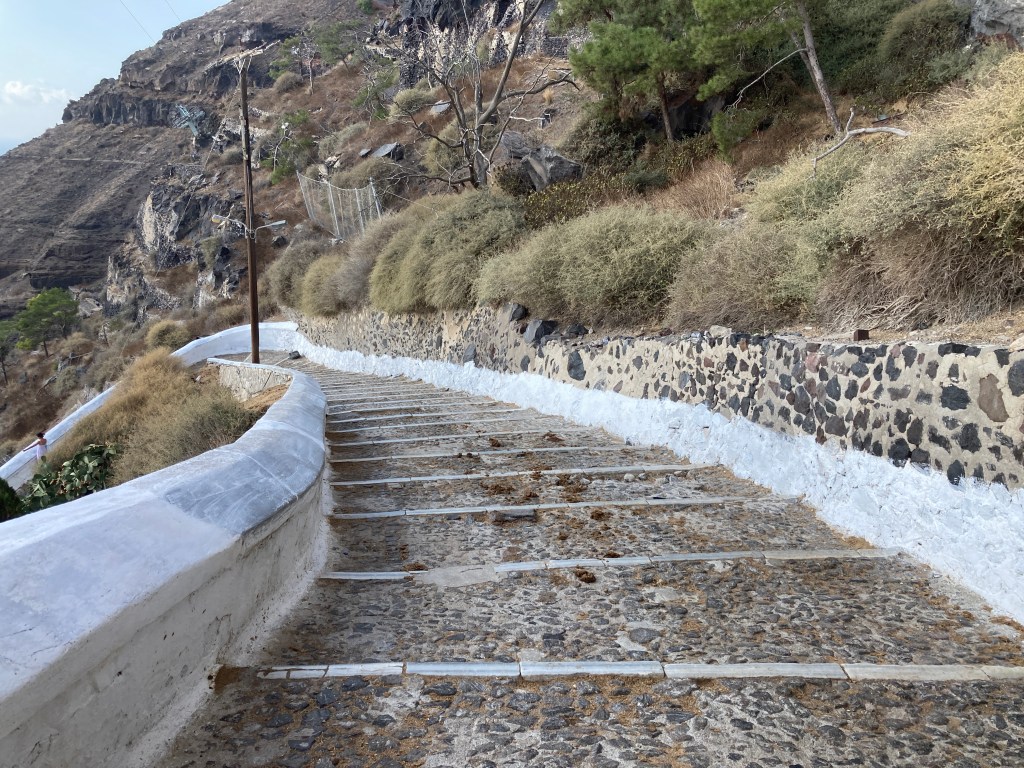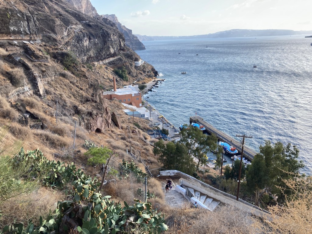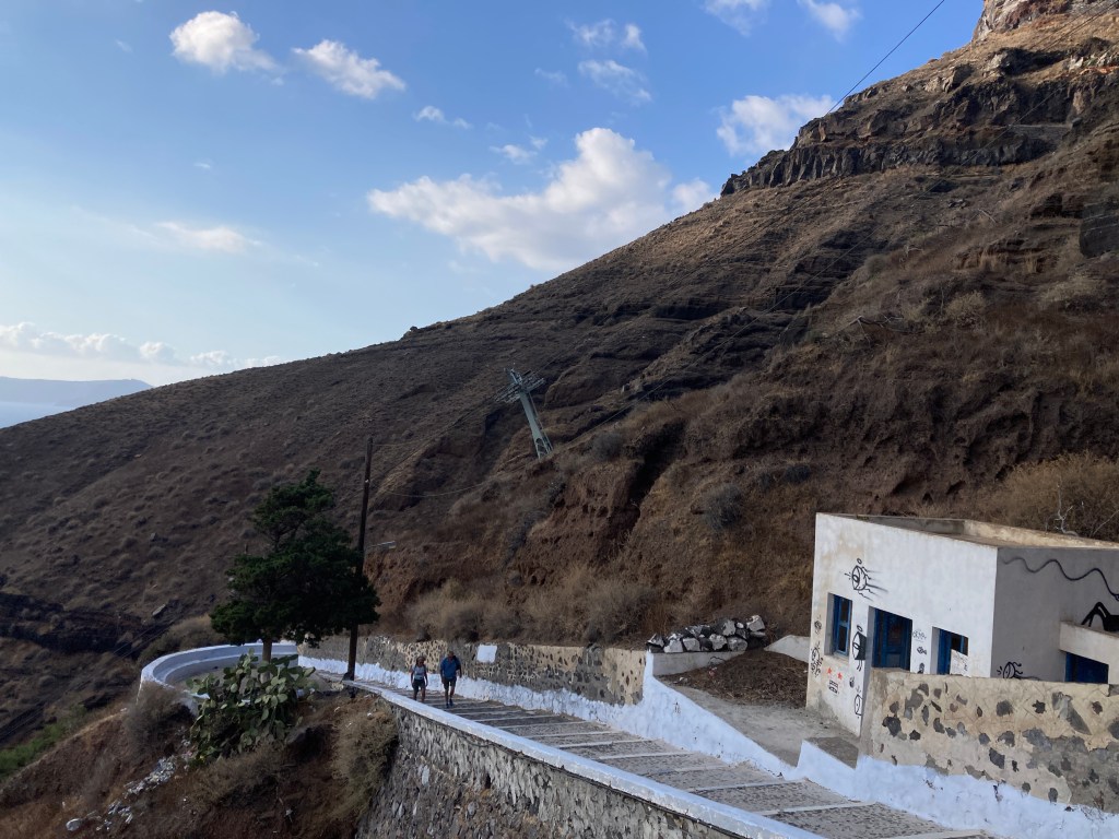 吃完了午饭可以步行到旧码头 (Santorini Old Harbor),你可以选着步行下去或骑驴子下去或坐缆车,我觉得下坡比较不费力气,所以就步行走了下去