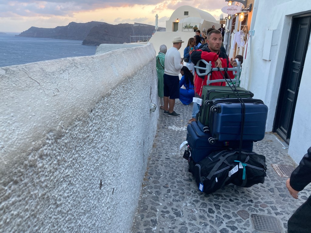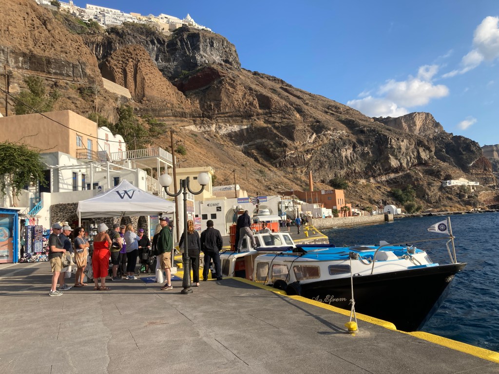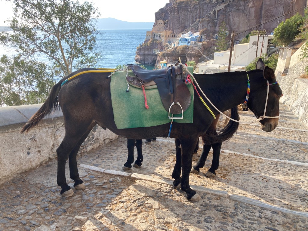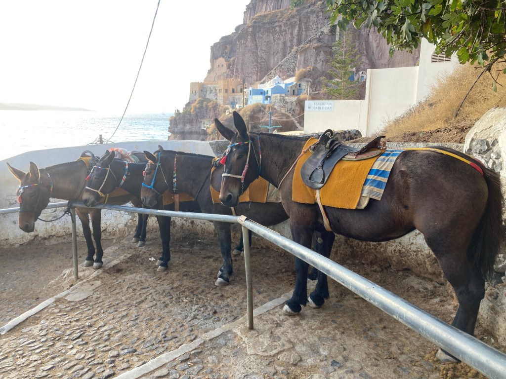 吃完了午饭可以步行到旧码头 (Santorini Old Harbor),你可以选着步行下去或骑驴子下去或坐缆车,我觉得下坡比较不费力气,所以就步行走了下去