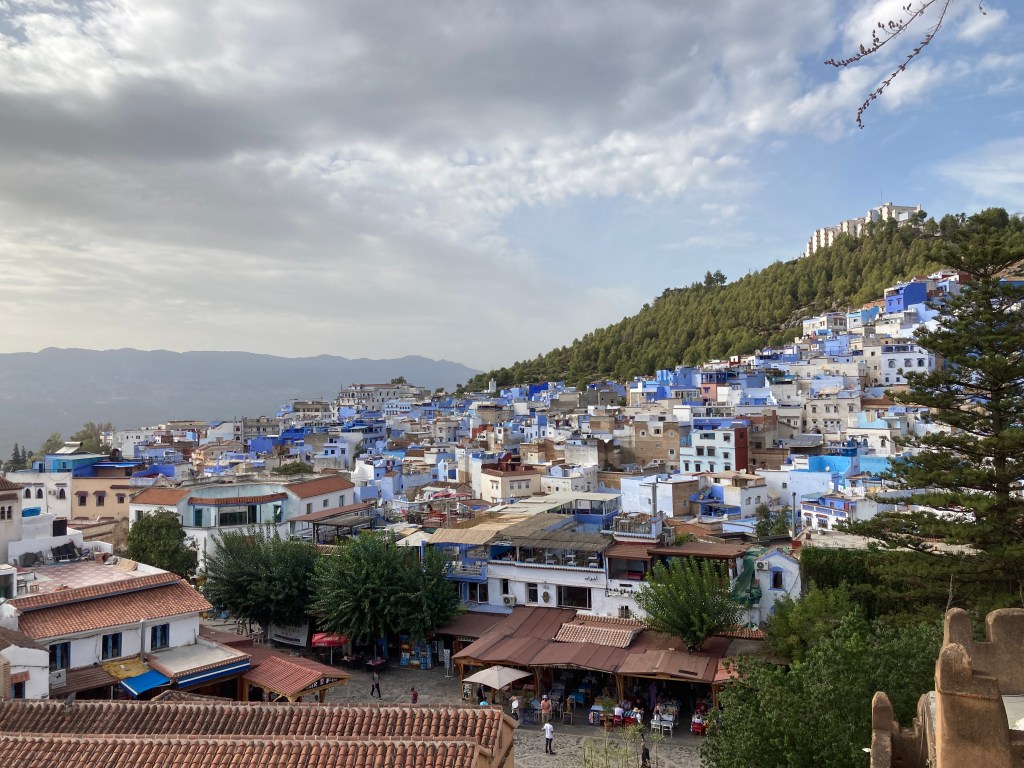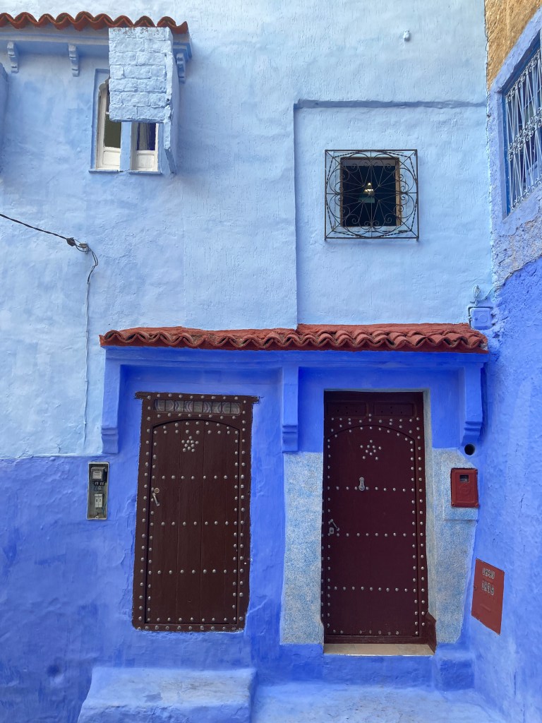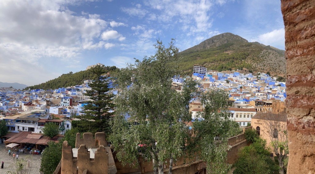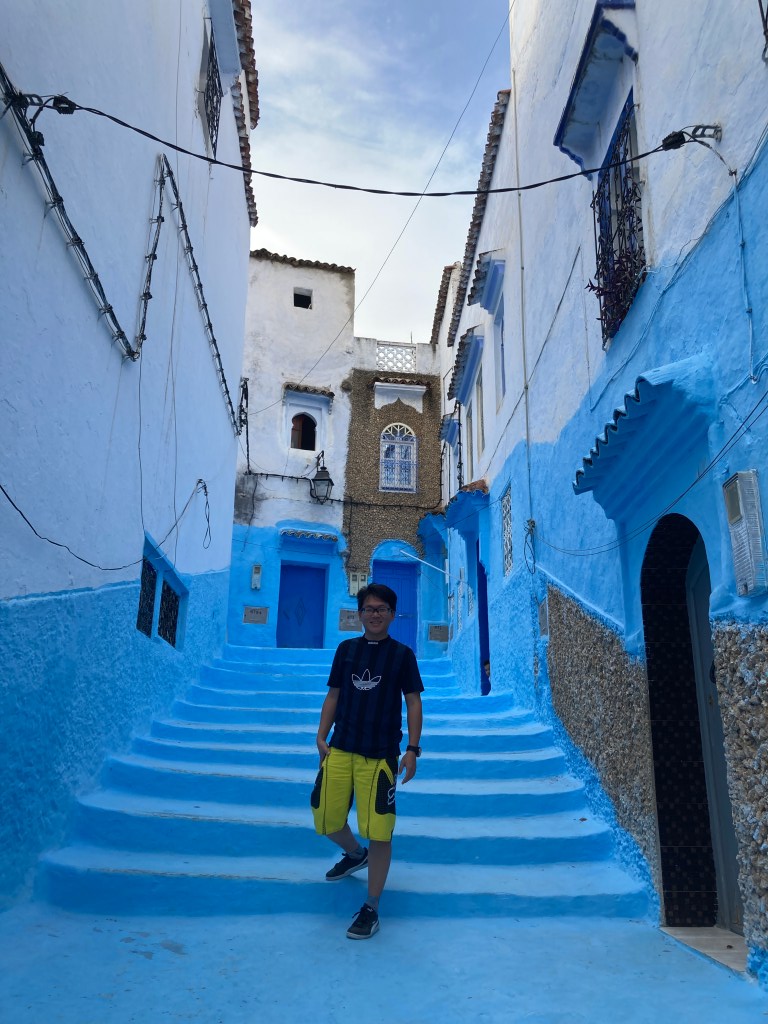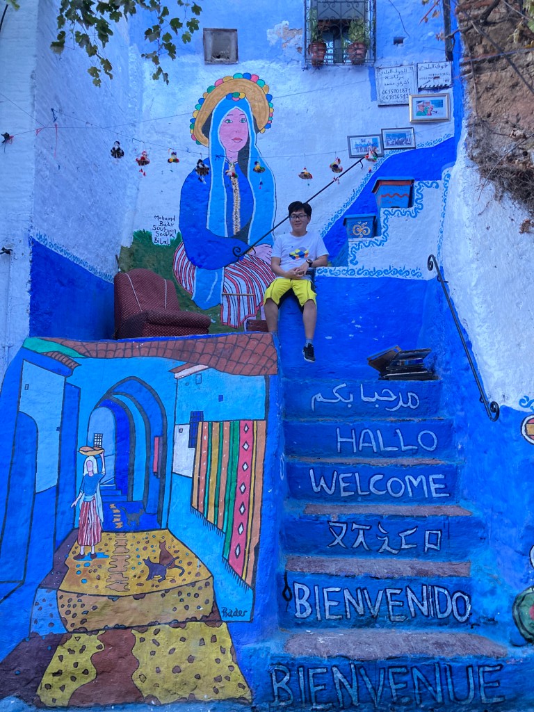 巴士刚好停在蓝色小镇附近,可以步行到蓝色小镇,但是因为都是斜坡,加上又背着很重的行李,所以就决定打车到住宿。到了蓝色小镇感觉就是一个迷你菲斯(Fes)古城(Medina),也是很容易迷路,但是这里就不会一直有人缠着你。在这里每一个角落都是打卡景点,每一个位子都适合照相