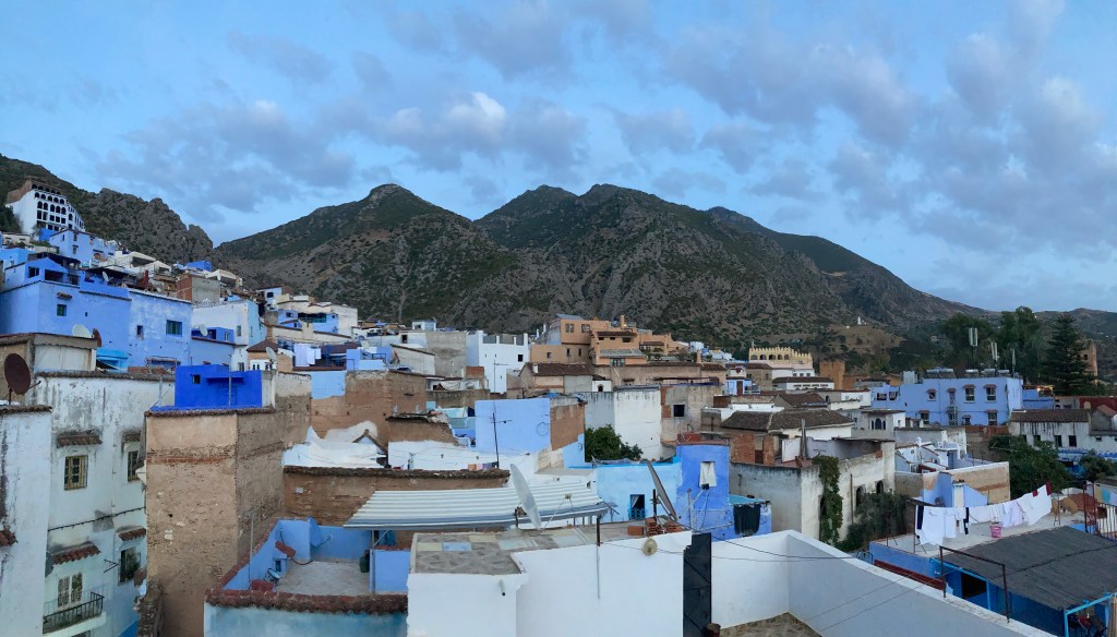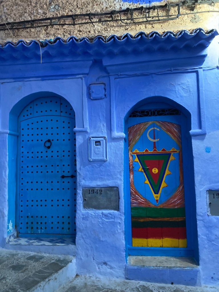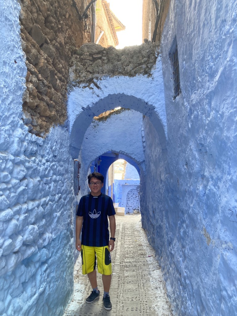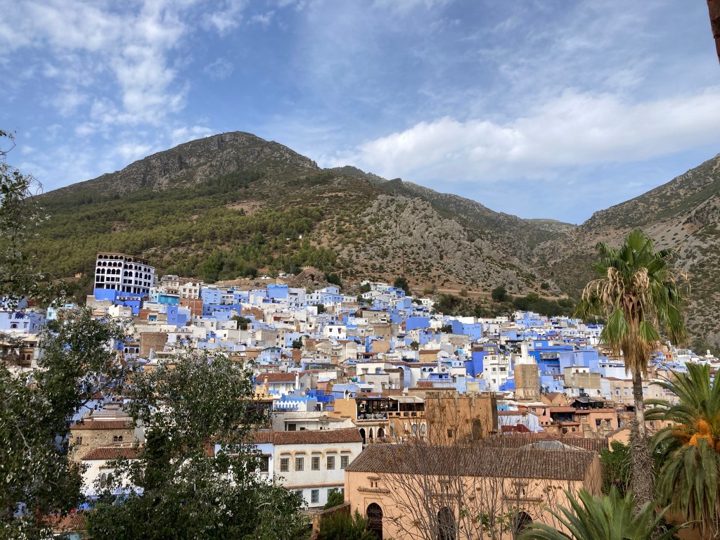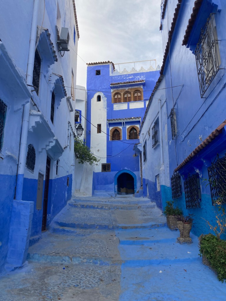巴士刚好停在蓝色小镇附近,可以步行到蓝色小镇,但是因为都是斜坡,加上又背着很重的行李,所以就决定打车到住宿。到了蓝色小镇感觉就是一个迷你菲斯(Fes)古城(Medina),也是很容易迷路,但是这里就不会一直有人缠着你。在这里每一个角落都是打卡景点,每一个位子都适合照相