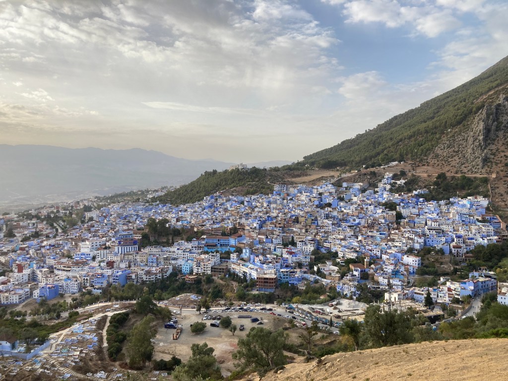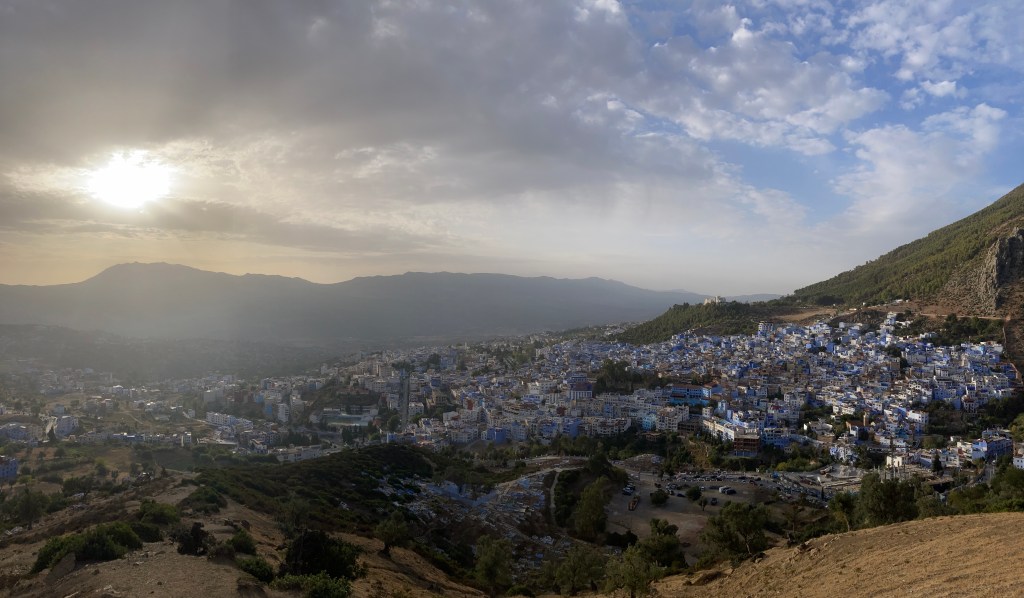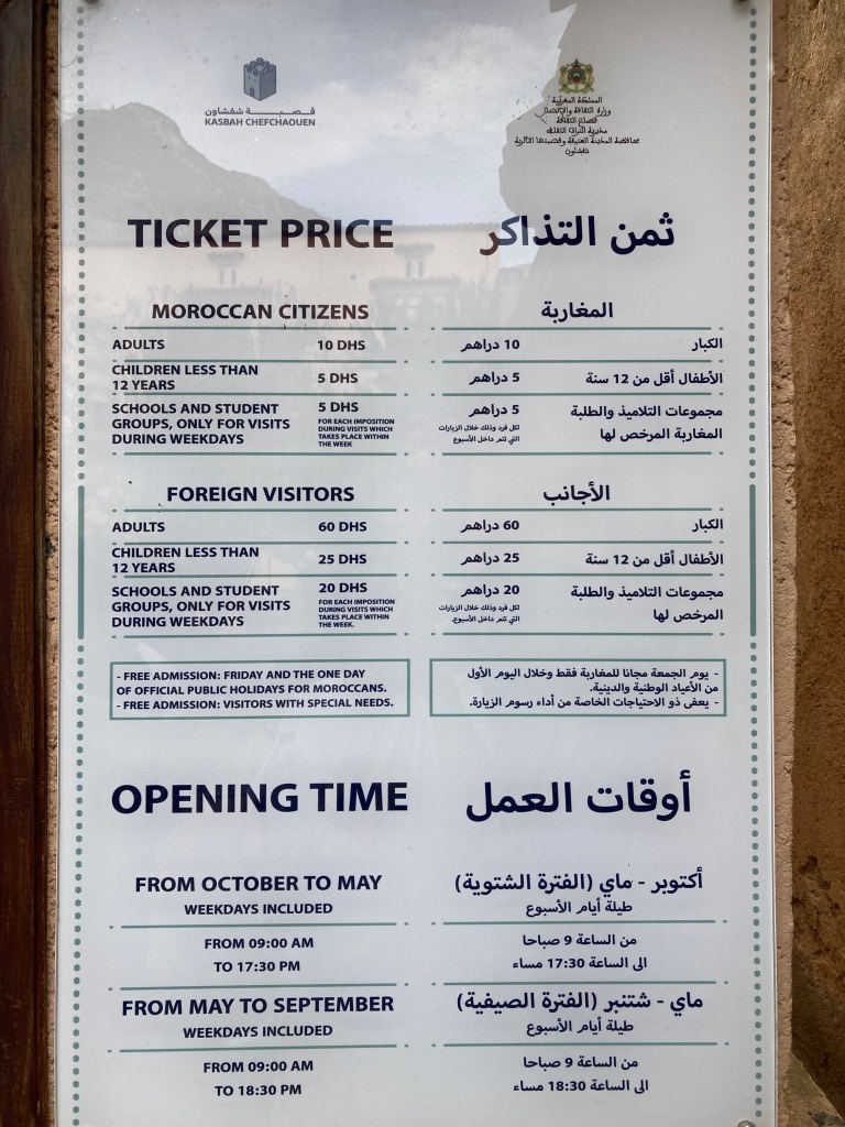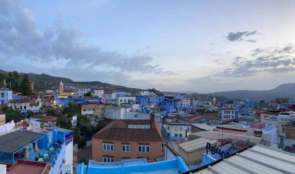 结束了 Fes 的旅程就乘坐攻巴士前往蓝色小镇(Chefchaouen),一路上可以看到很多驴子,司机半路会停下来30分钟让你们吃东西和上厕所,这里的厕所很贵,要2迪拉姆
