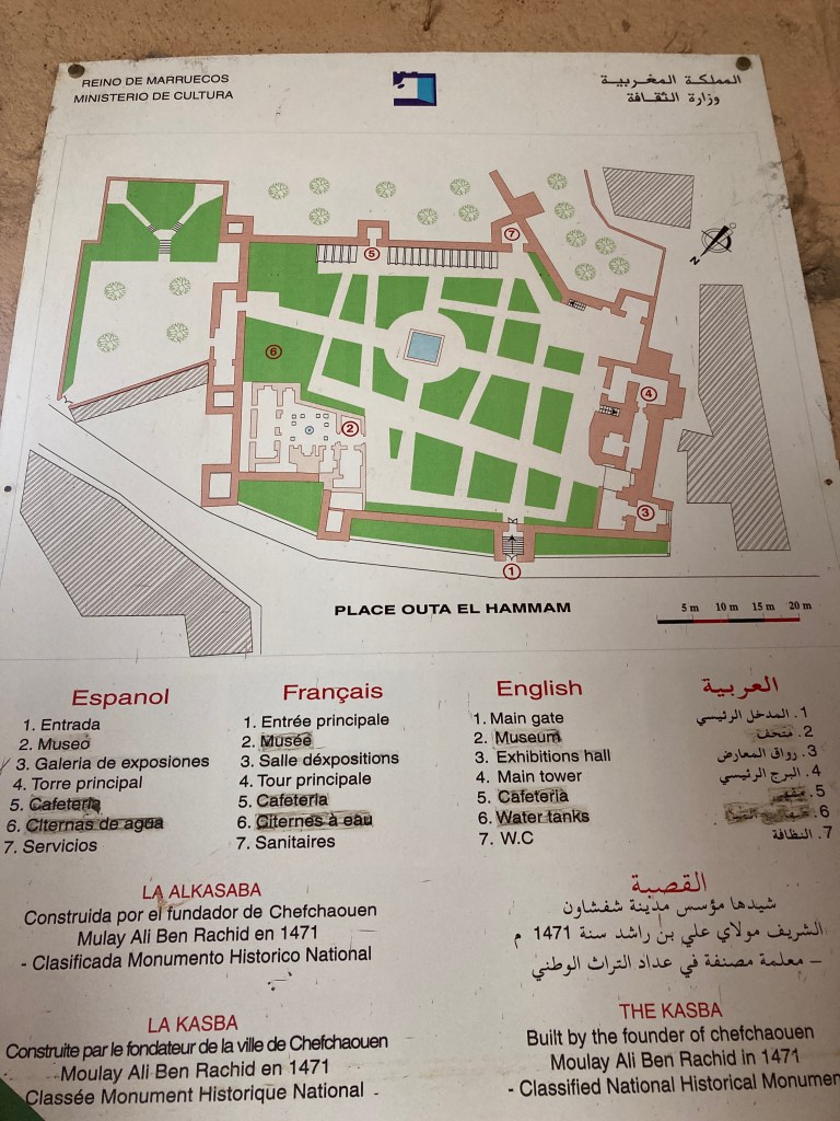 第一天先随便逛逛,探索四周围,先到乌塔埃尔哈曼广场(Plaza Uta el Hamman),这是一个露天广场,有很多小孩子手里拿着钥匙圈和冰箱磁铁到处问游客要不要买,有人卖画的,有街头传统乐器表演的, 对面是 Alkasaba 一个历史建筑物,旁边有一个清真寺