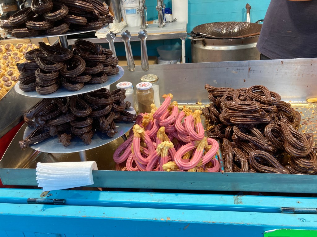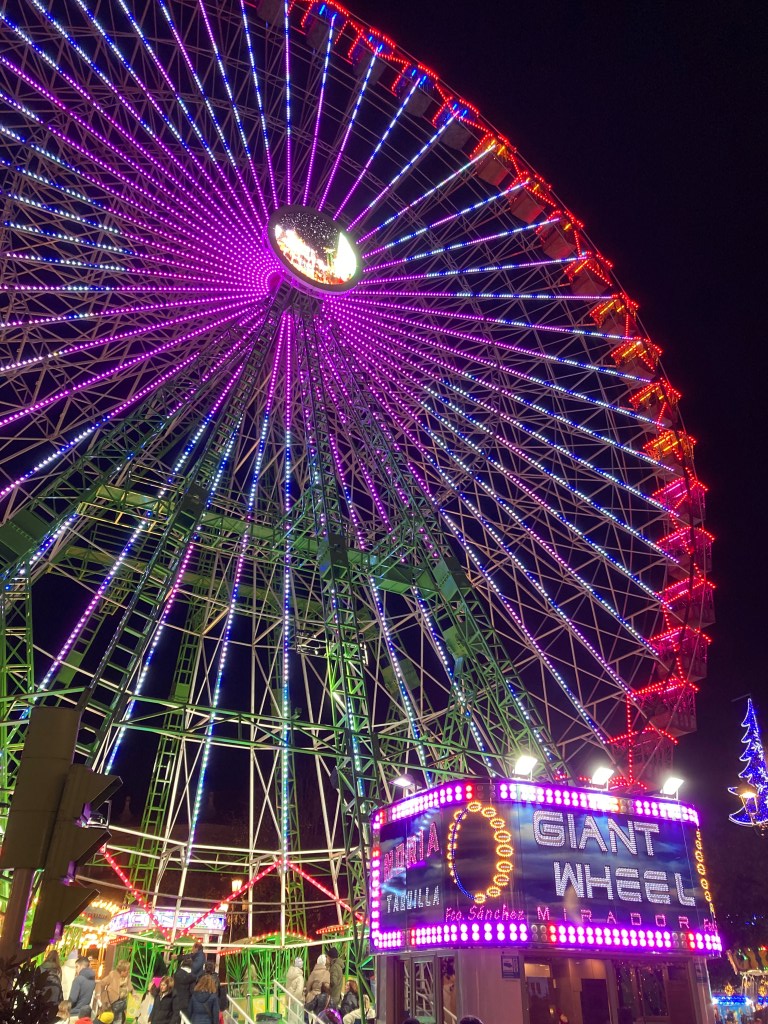 逛了不久就来到了很多游乐设施的地方,摩天轮是最显眼的,然后圣诞市场就在隔壁,有卖很多吃的和喝的
