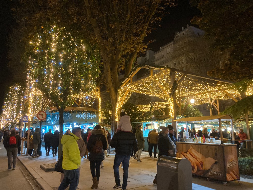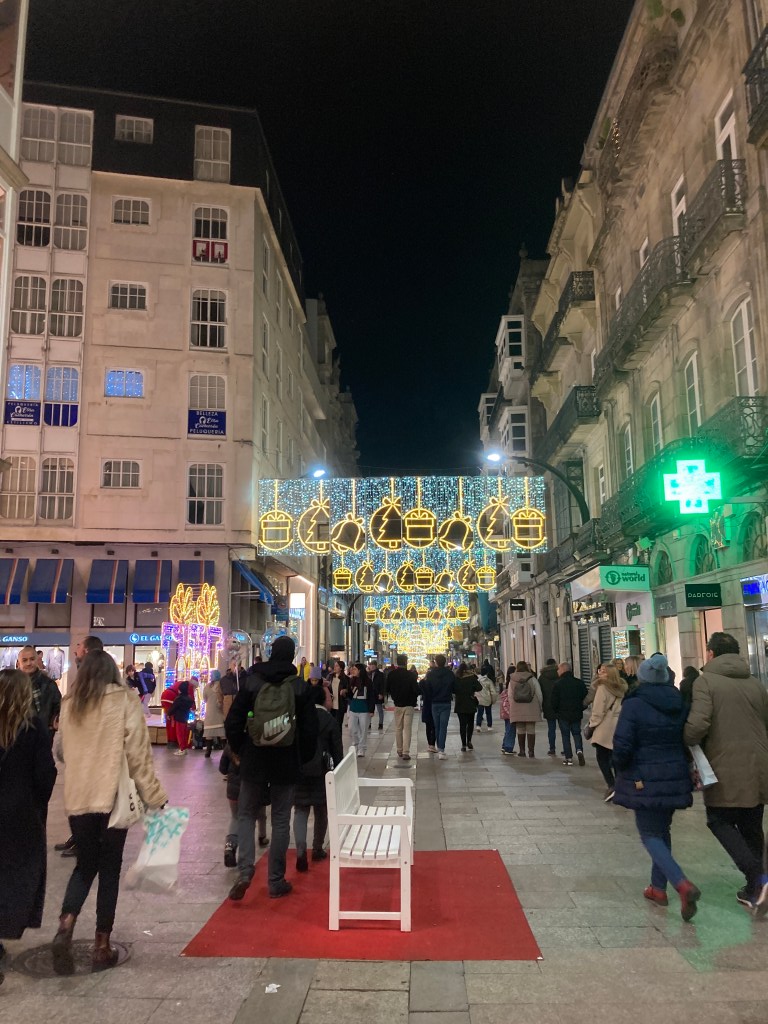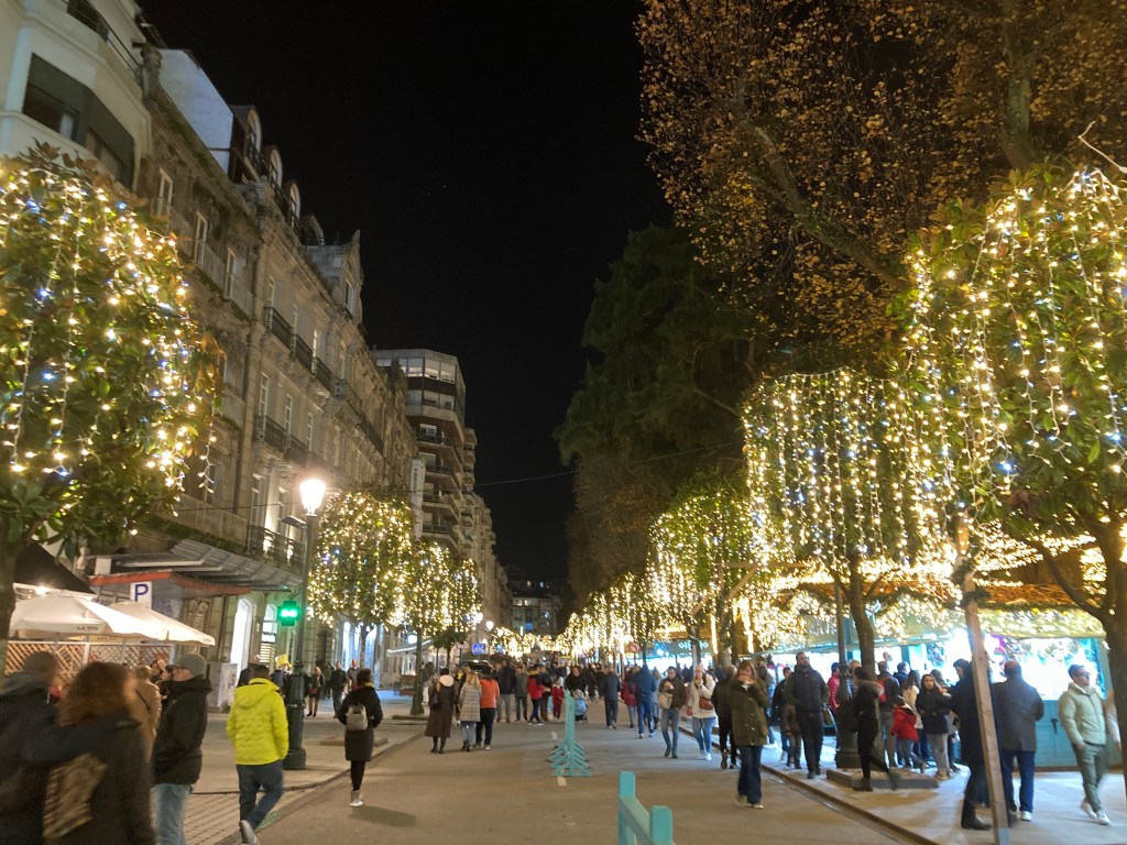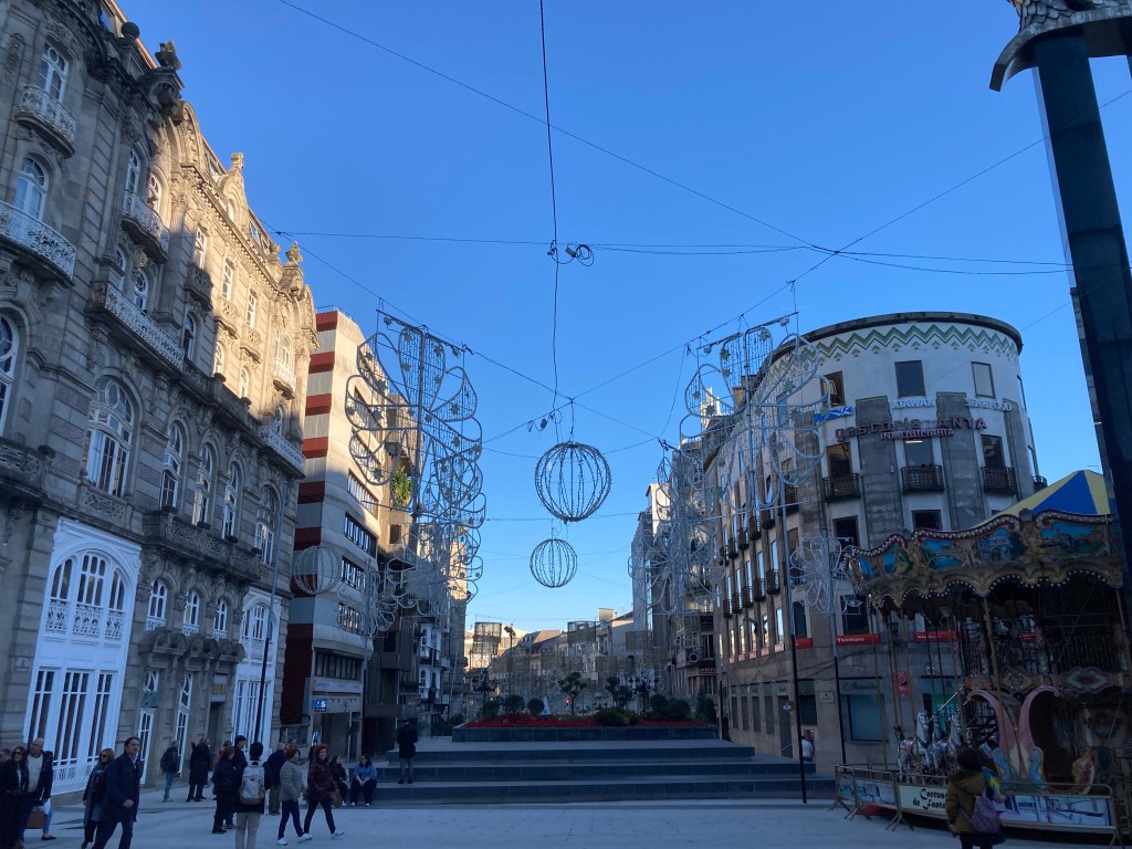 结束了葡萄牙 Praca forte de Valenca的行程就开车来到了西班牙的 Vigo(维戈),在半路看到 Vigo 赌场的广告牌,心里就有莫名的兴奋。这次的行程是去市中心逛逛,等待晚上街上圣诞的装饰灯亮起来。这里的街上很漂亮,感觉比葡萄牙的街上还要更漂亮些
