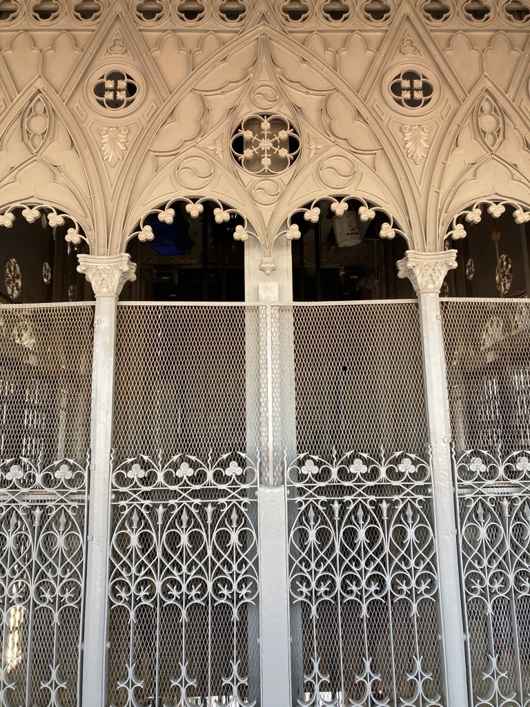 这台钢铁升降机高45米,新哥特式装饰,每层有着不同的样式。通过螺旋楼梯可抵达顶层,顶楼有一个阳台,可供观赏圣若热城堡,罗西乌广场(Praça do Rossio)和庞巴尔下城的景色。它设有两个升降机笼,均为木质内饰,最多可乘载20名乘客,已经成为里斯本的一大旅游景观。 在里斯本的城市升降机中,圣朱斯塔是唯一垂直的一台