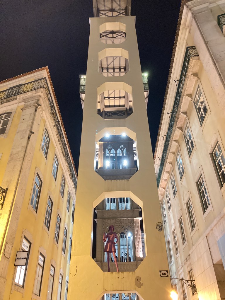 品尝了 Ginjinha(櫻桃白蘭地),就步行到 Elevador de Santa Justa(圣朱斯塔升降机),你可以从最底部乘坐升降机上来,或者可以步行经过天桥直接到达升降机的中间高度。