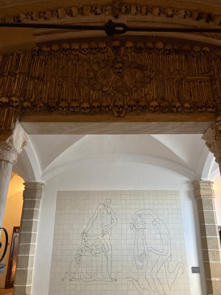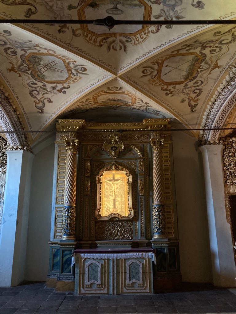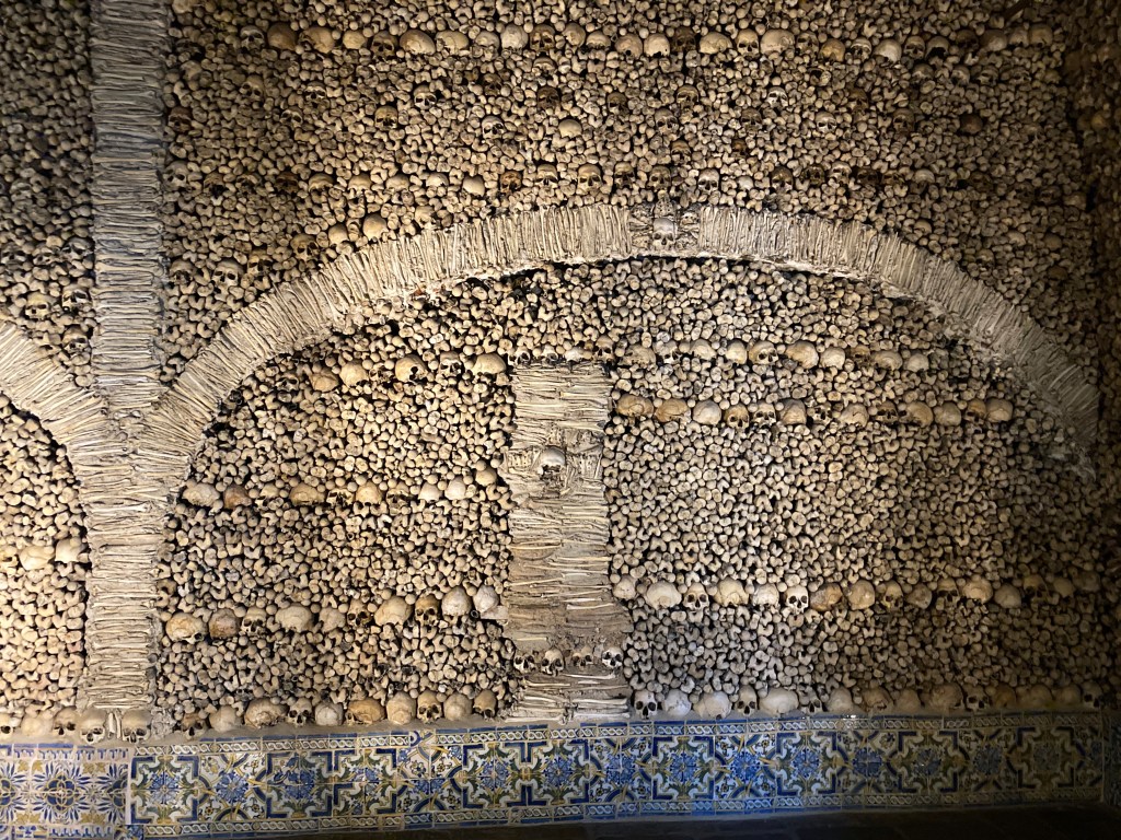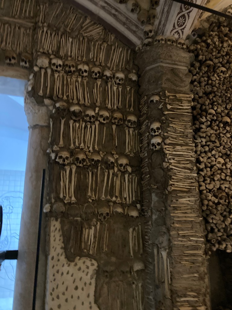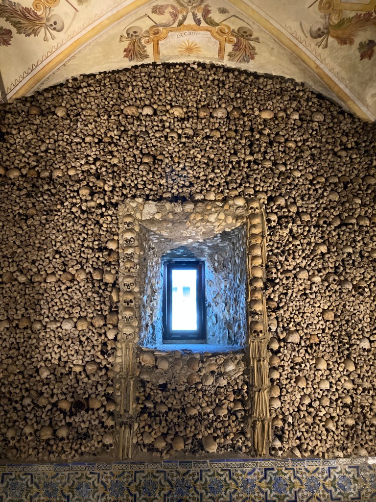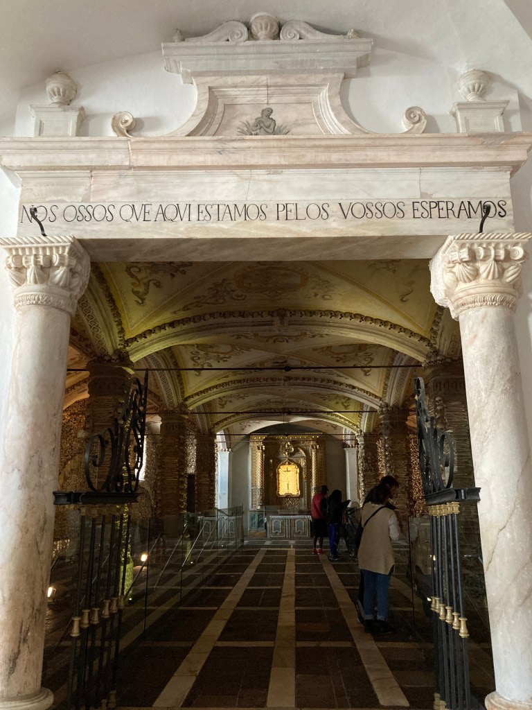 尸骨礼拜堂(Chapel of Bones)是在 Igreja e Mosteiro de São Francisco 大教堂(圣弗朗西斯教堂)里面。在礼拜堂的门口上门写着 “我们的尸骨,正在等着你们的尸骨”