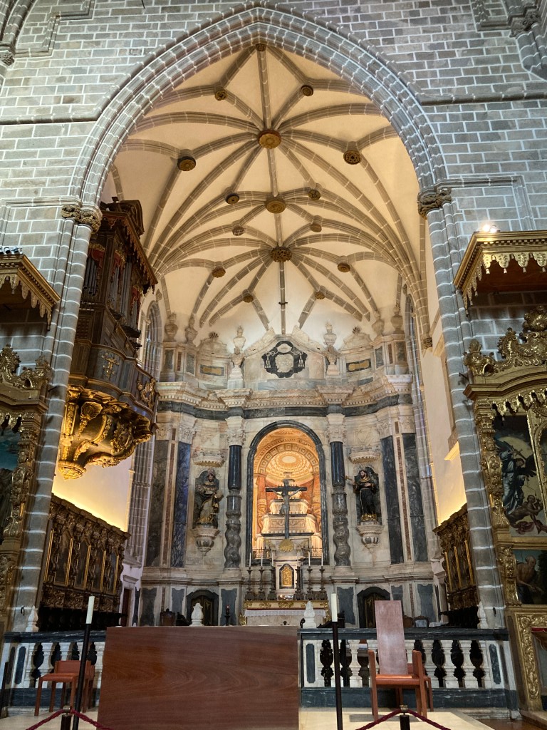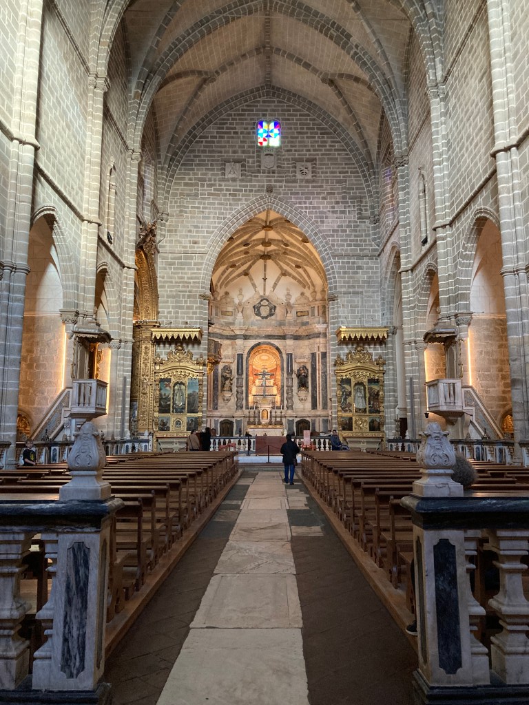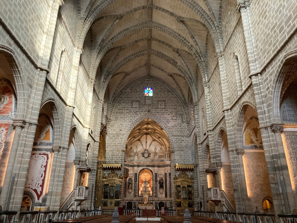 这座哥特式-曼努埃尔风格的建筑群建于 1480 年至 1510 年间,由石匠大师 Martim Lourenço 和 Pero de Trilho 建造,由皇家画家 Francisco Henriques、Jorge Afonso 和 Garcia Fernandes 装饰,与标志着海上扩张时期,教堂带有尖拱形拱顶