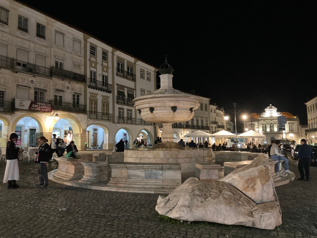 这个巴洛克风格的喷泉由大理石制成,有 8 个喷口,每个喷口与 Praça do Giraldo 的每条主要街道相关联。 顶部有一顶皇冠。 根据历史,西班牙的菲利普三世在 1619 年认为这座喷泉值得加上皇冠。