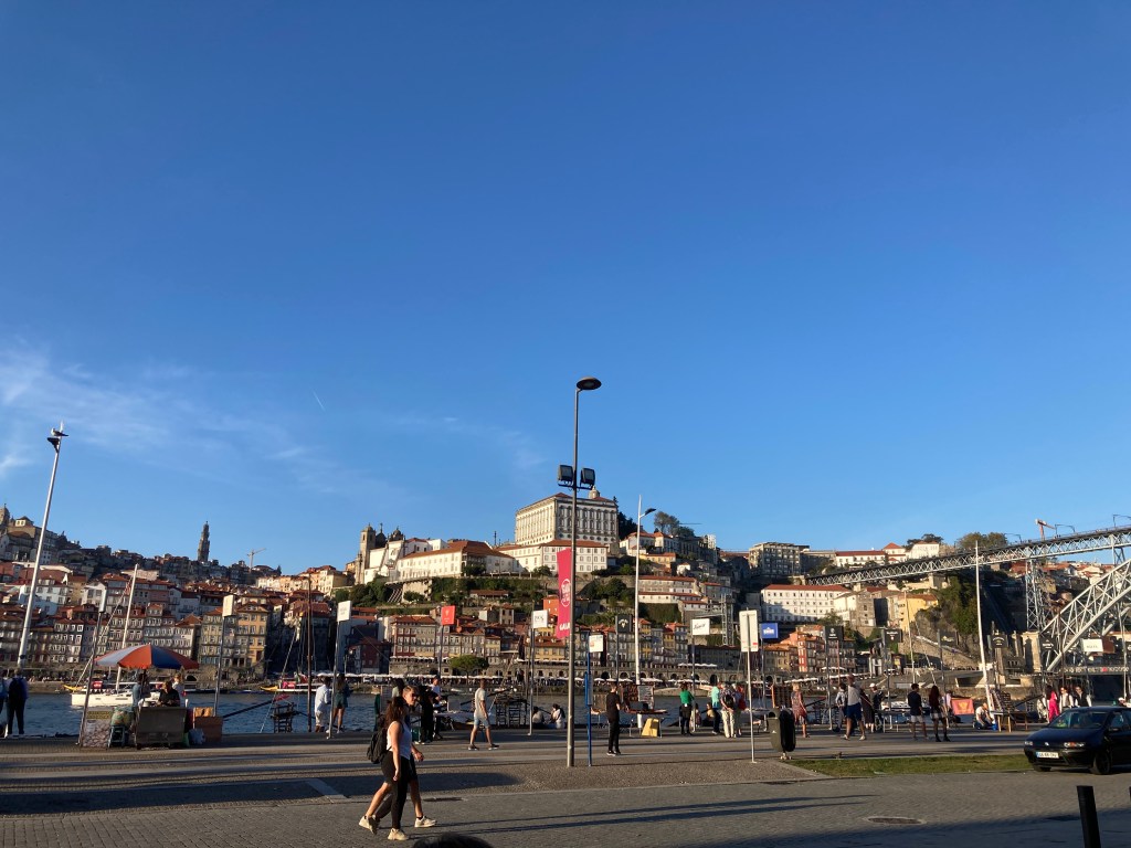 坐完了船可以到对面的街,这条街很多咖啡馆,可以选择一个屋顶露天酒吧看日落,品尝波尔图(Porto)红酒,这里的红酒很出名,稍微带一点甜味,然后可以可以慢慢的欣赏杜罗河(Douro River)