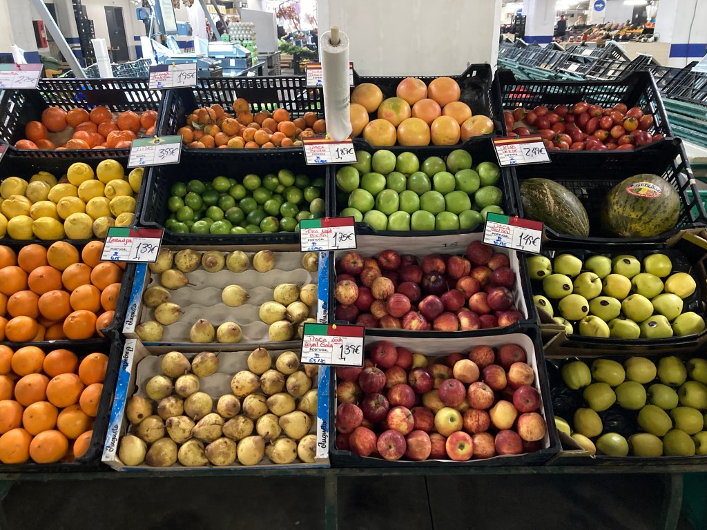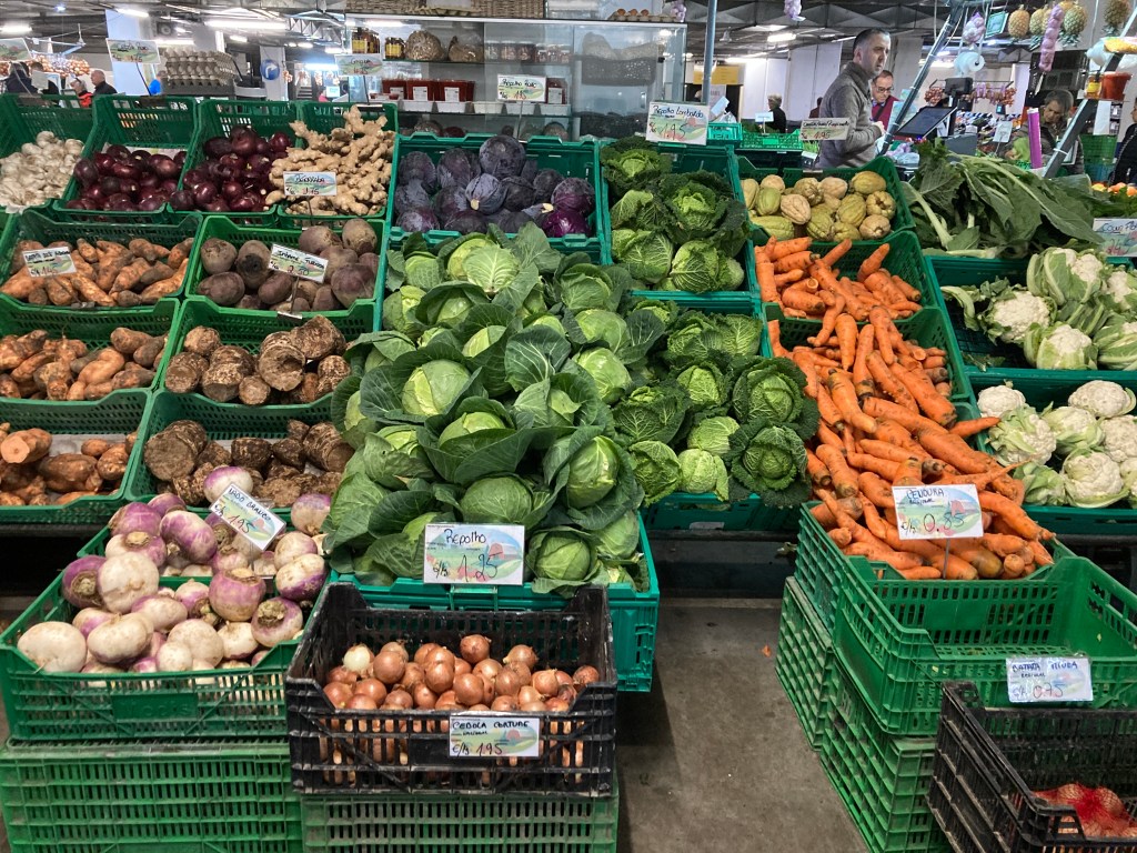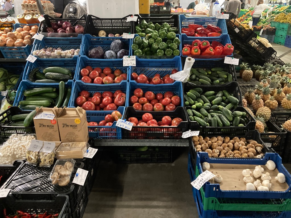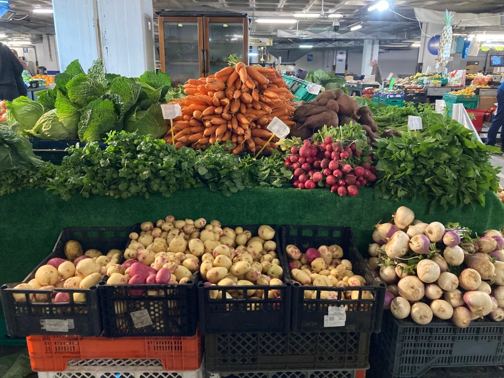 这里有一个很特别的市场,是建在停车场里面的,底楼是卖蔬菜水果,楼上是卖鱼,肉类和起司等等。