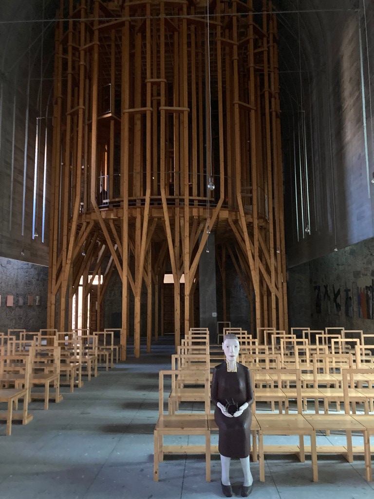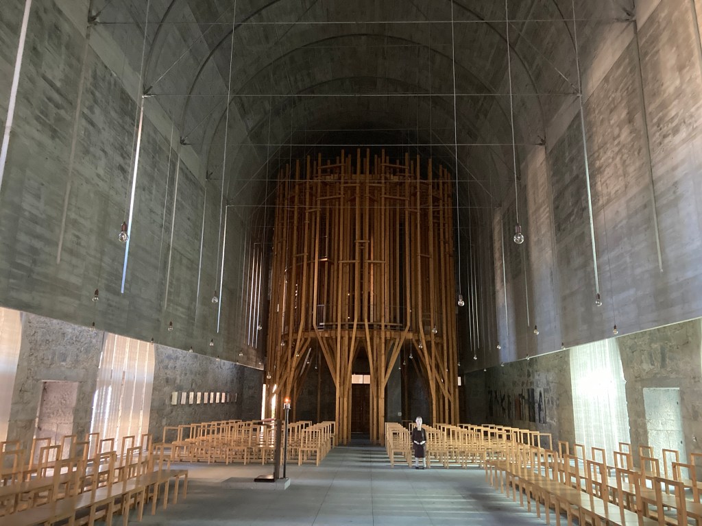 礼拜堂是用木头建造的,从支撑结构到赋予由几块木头组成的空间的平面,安装在一起,创造了一个平衡的结构,在神圣空间的入口处表现为一片森林。