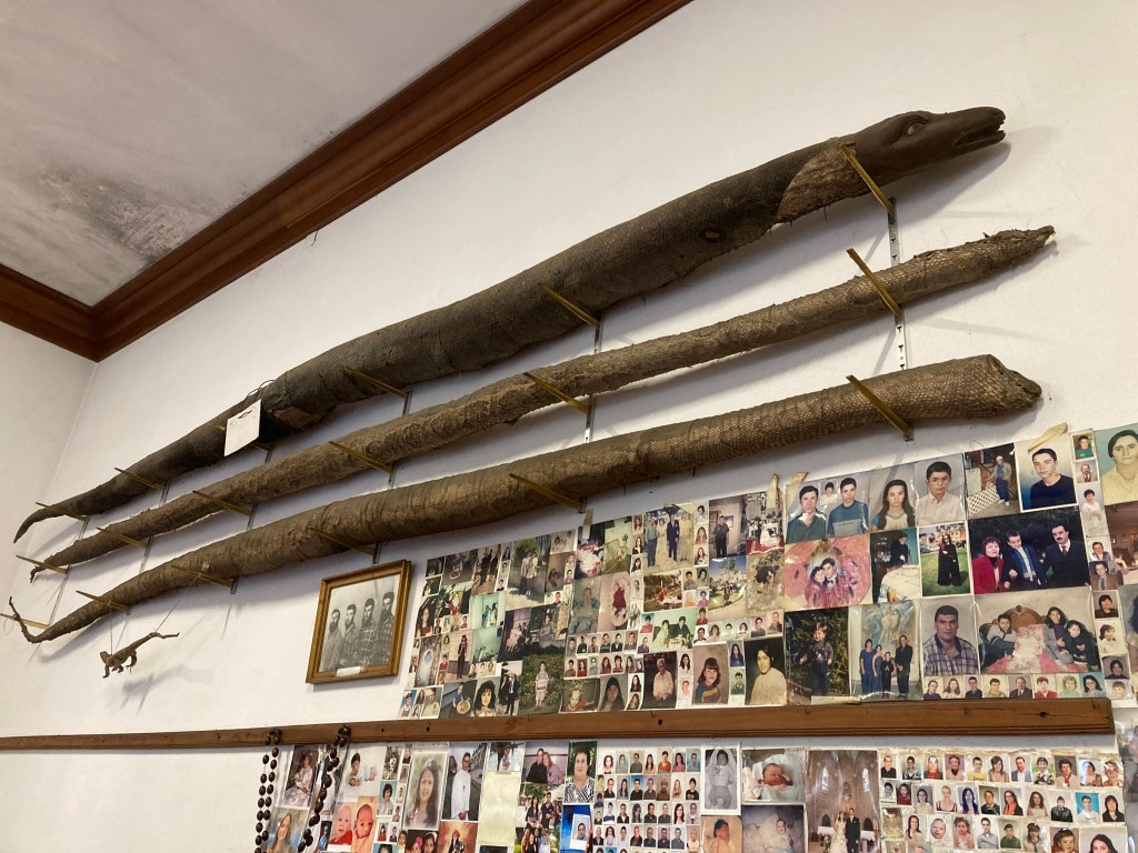 相传,1818 年,巴西的一位葡萄牙移民在著名的 Terras de Vera Cruz 砍柴,当时他坐在一根看起来像圆木的东西上以恢复疲劳。 当比周围的木头更滑、更粘的树干开始移动时,这位葡萄牙移民意识到那是一条蛇,一条几米长的蟒蛇。 在痛苦的时刻,他向救灾圣母祈求力量打败这条蛇,经过艰苦的战斗,他只用腰间的刀就能杀死这条蛇。 为了感谢圣母回应了他的祈祷,他将蟒蛇的皮送到救济院。 此后,来自世界各地的蛇皮陆续运抵Alívio圣地,葡萄牙人民寄希望于Nossa Senhora do Alívio的帮助,渡过难关,尤其是在海外战争时期。 在 Casa das Promessas,我们可以看到通过 Nossa Senhora do Alívio 的调解获得的巨大恩典,其中四张蟒蛇皮脱颖而出。