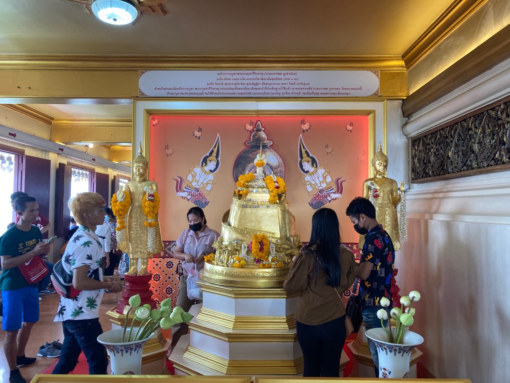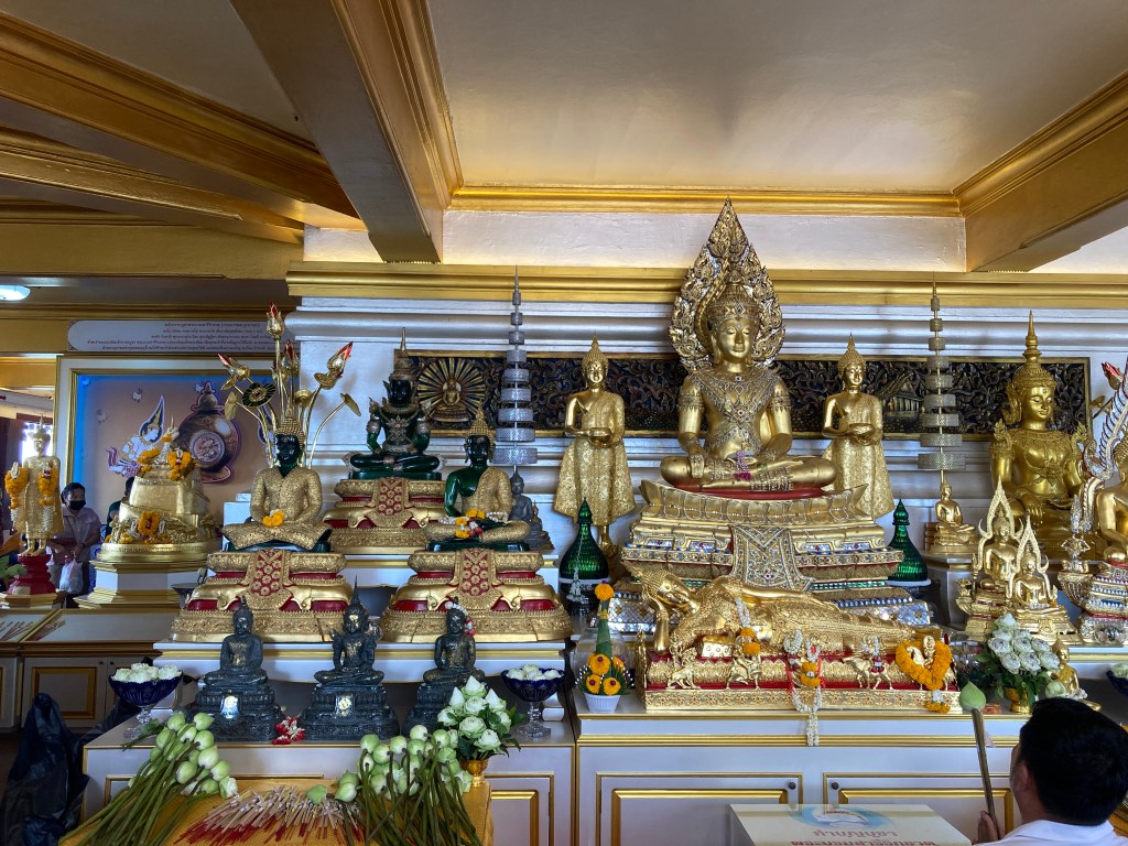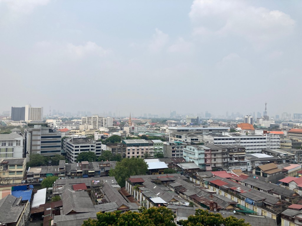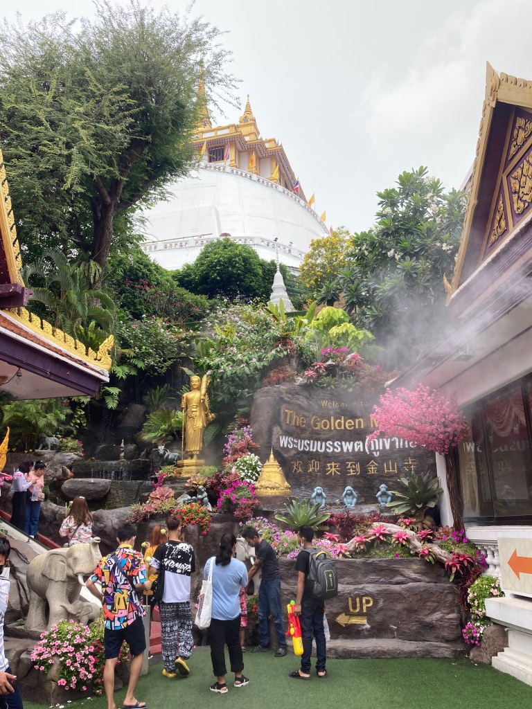 中午之前可以去黄金山寺(Wat Saket),这个寺庙以其壮观的金色塔楼和惊人的城市全景而闻名于世。