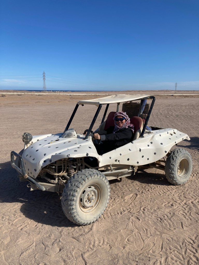 费用包含酒店接送,然后大约30分钟就到达萨哈拉沙漠,旅行就开始了。一开始就是一人一辆的沙漠四驱车,在沙漠行驶四驱车有点难度,自己小心一点就可以了。接下来也是第二种的沙漠四驱车,这个是两人一辆,这两比较低,所以感觉会比较安全,但是方向盘蛮硬的。然后就是体验骑骆驼了,就真的是体验而已,大约10分钟左右。然后就有介绍一些手工艺品,天然草药,还有现场做当地人的饼还可以品尝。然后就是晚饭时间,在晚饭的时候有女生的舞蹈表演,然后就是埃及传统旋转舞。