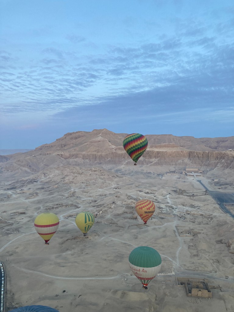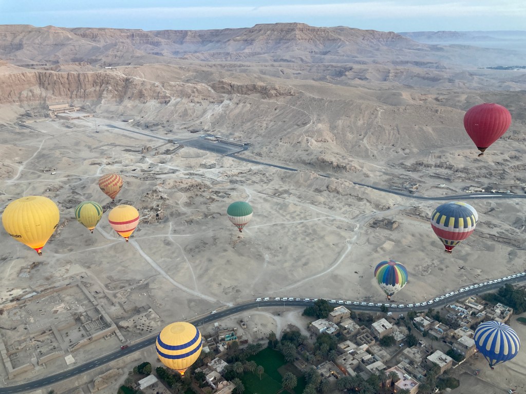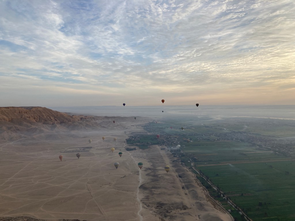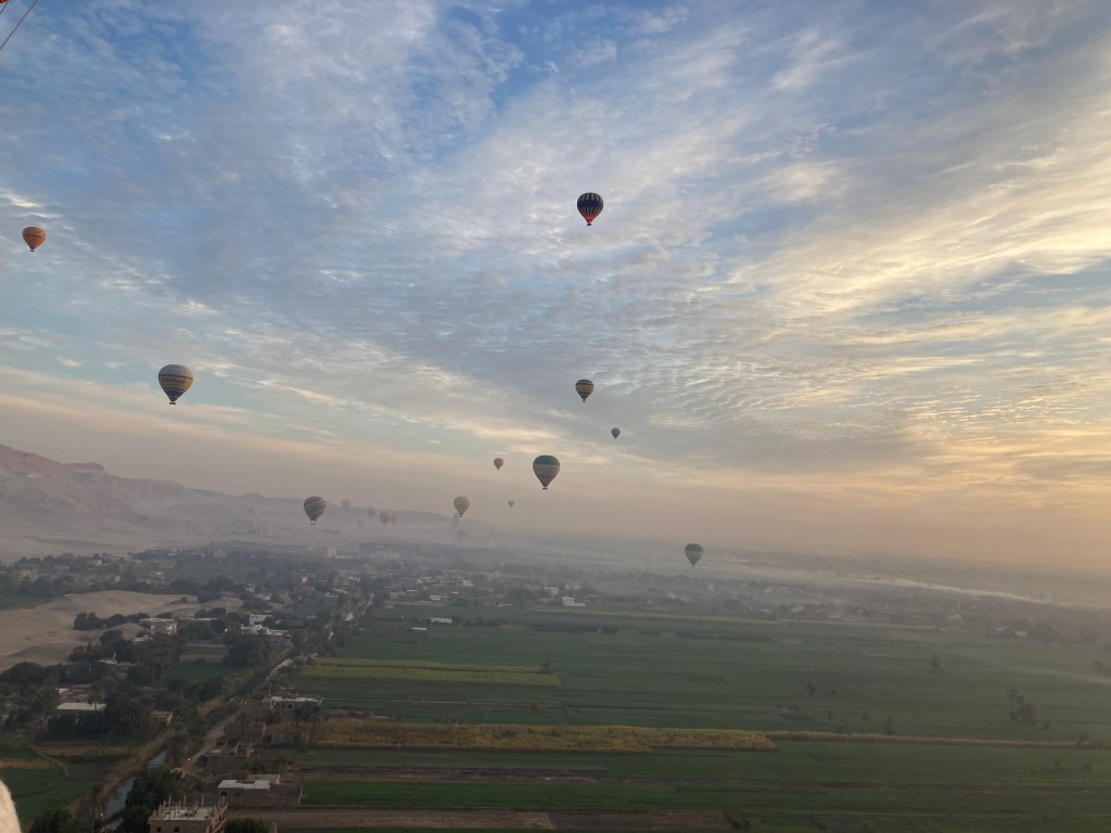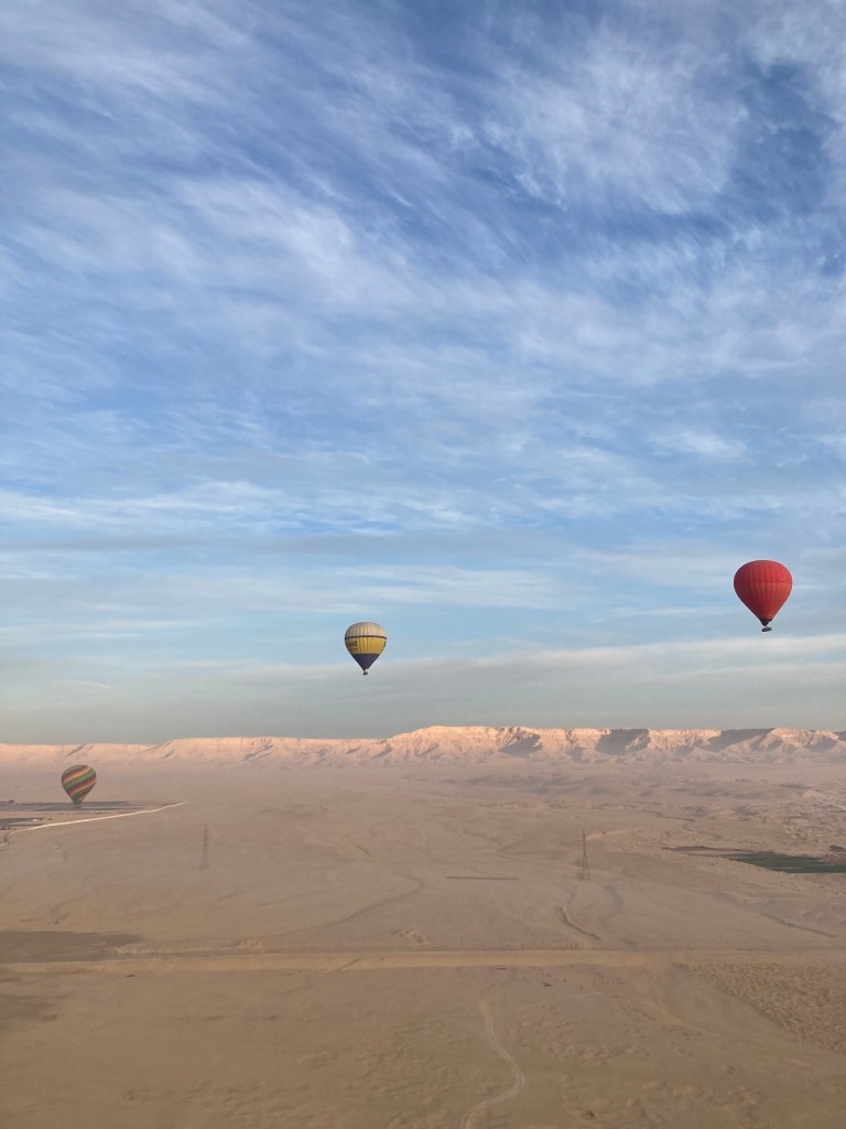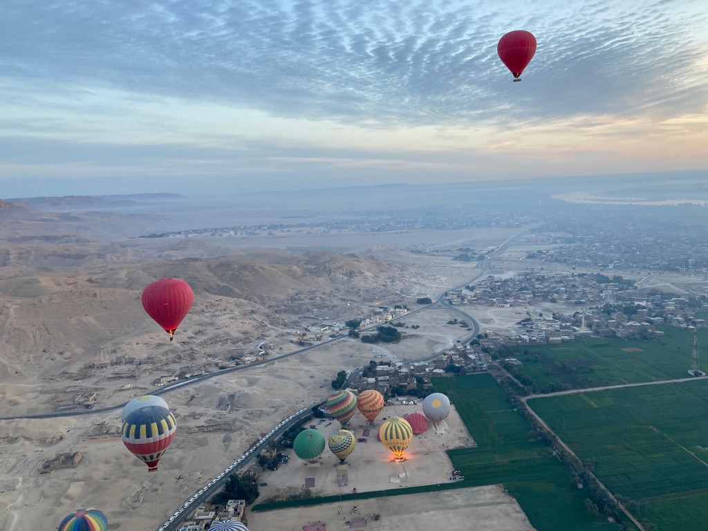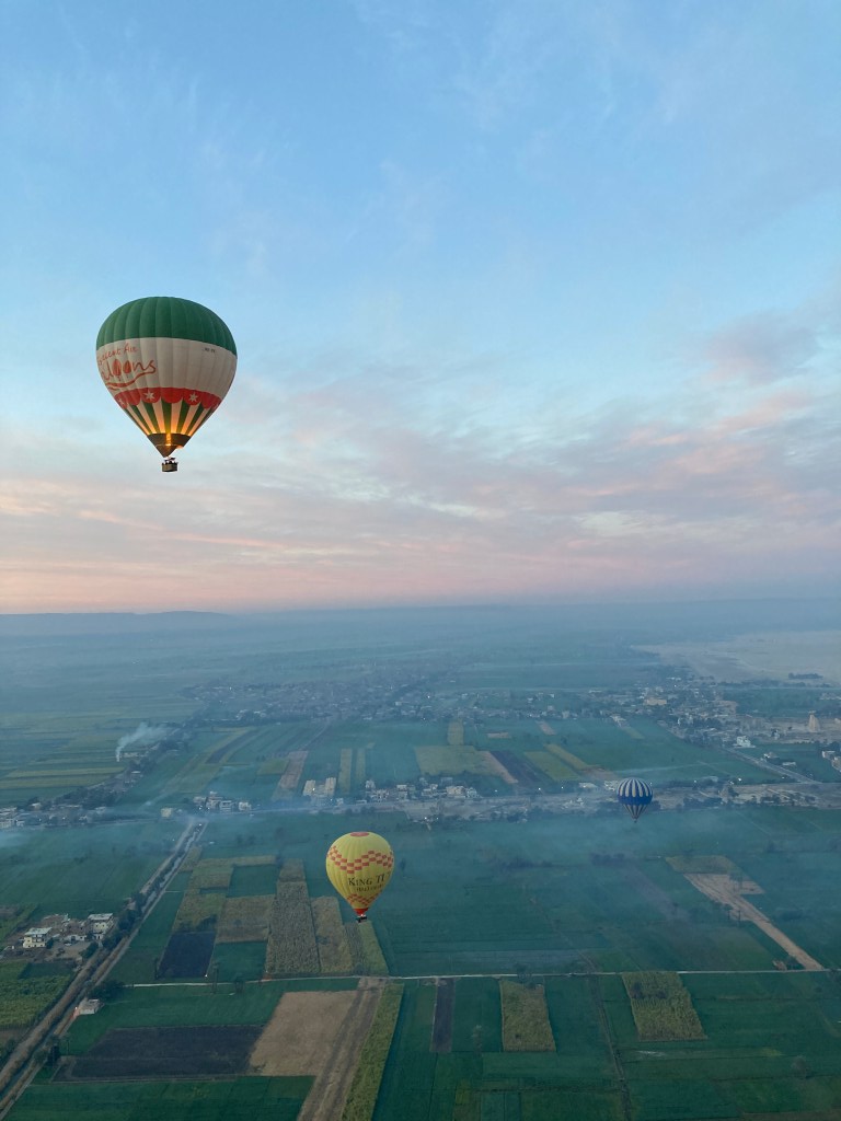 卢克索热气球之旅不仅给予您壮丽的景色,还能带来一种平静和宁静的感觉。在天空中漂浮的同时,您可以享受到一种与世隔绝的安宁,远离尘嚣和城市喧嚣。您可以欣赏到卢克索乡村地区的宁静景色,沿途可能会看到农田、村庄和农民劳作的身影。