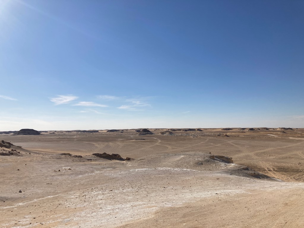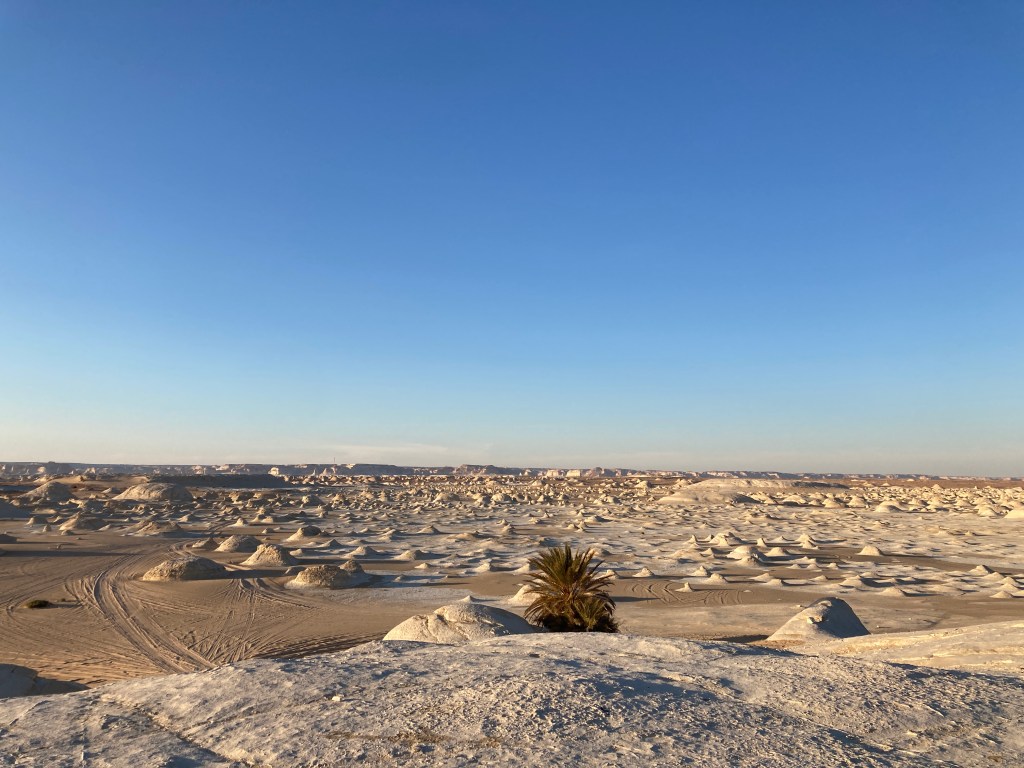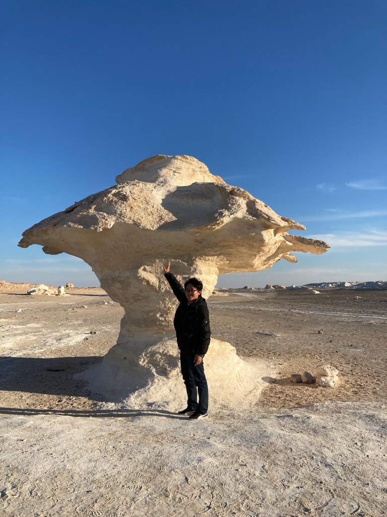 黑白沙漠位于埃及的西部,距离开罗约500公里。它的名字来自于沙漠中不同的地貌,黑色火山岩与白色石质沙丘相互交错,形成了一个令人惊叹的景观。这里几乎没有人烟,远离城市的喧嚣和繁忙,是追寻冒险和寻找内心宁静的完美场所。