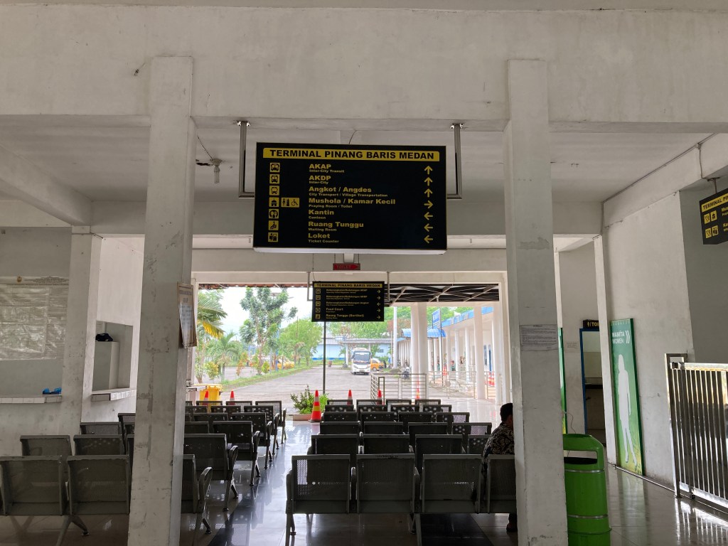 结束了皇宫之旅,本来要坐本地巴士去 Bukit Lawang,所以就去了当地车站(Terminal Pinang Baris Medan)。结果在这里完全是没有售票系统,到达的时候就一堆人围着你拉着你去购票,由于太过混乱,所以就决定先出去冷静一下再进来,结果没有想到就有小混混跟着我开始勒索我了,开始跟我要钱,脸部表情还很凶猛,于是我躲到隔壁的面包里面,用打车软件 Grab 叫了一辆车,然后又回去了棉兰是中心,再想想办法要怎么样过去。