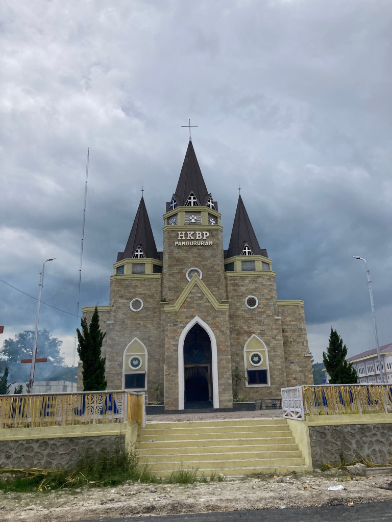 HKBP Bolon Pangururan教堂是一座迷人而庄严的基督教教堂。其建筑风格独特,融合了当地传统文化元素和现代设计。教堂的外观宏伟壮观,高耸入云,犹如一座灵性的守护者。进入教堂内部,你会被华丽的室内装饰所震撼,彩色玻璃窗透射出神圣的光芒,营造出一种宁静而神秘的氛围。
