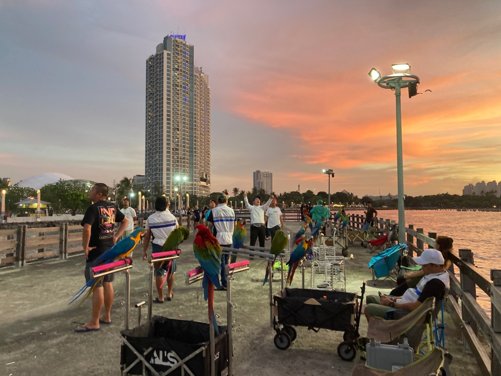 很多当地人在这里遛鸟,让鸟自由的飞翔,大概飞了几分钟会飞回来。