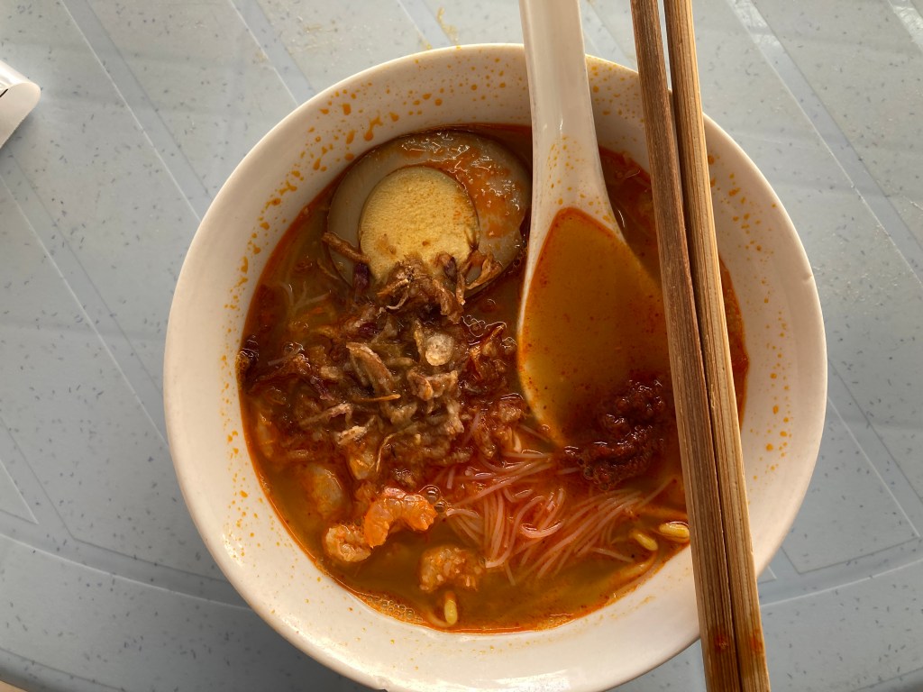 虾面和 Cendol,也是一个需要排很久的美食,看看排队的人。