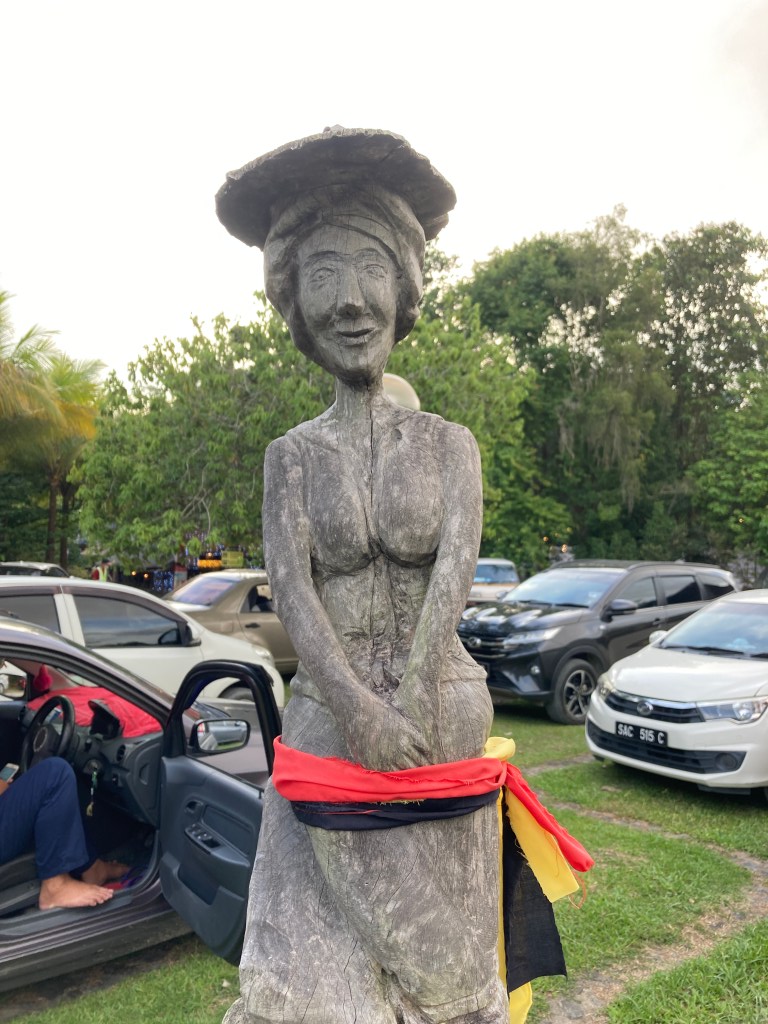 位于Kampung Tampasak的真正石质复制品更为出色。Tampasak也是Tembesu树的另一个名字。这种树是一种良好的木材树,其心材坚固耐用。以前sininggazanaks就是从这种木材雕刻而成的。虽然不确定这个村庄的名字是否与此有关。如何到达:这个村庄距离Kinarut镇约有30分钟的步行路程。在两排店屋之间,有一条道路横穿铁路轨道。沿着这条路走,直到你到达一个T字路口。向左转到达主要道路,然后向右转。你会看到下面有一个田地。石质复制品可以在田地中间的一棵树旁边看到。很难自己找到,而且我的指示可能不是很准确,所以在镇上问问路。