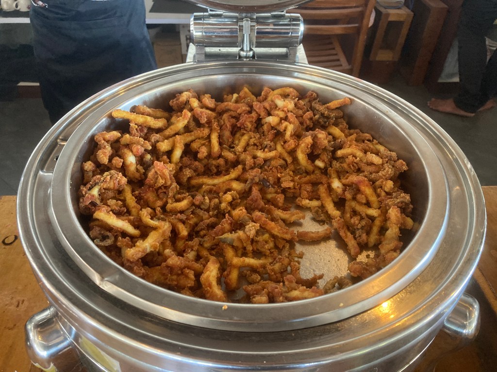 The buffet offers a wide variety of options, including surprising treats like Indian dosa (Roti Canai), and the food is quite delicious. After lunch, you can take a stroll on the beach, take photos, and even go for a swim in the sea.
