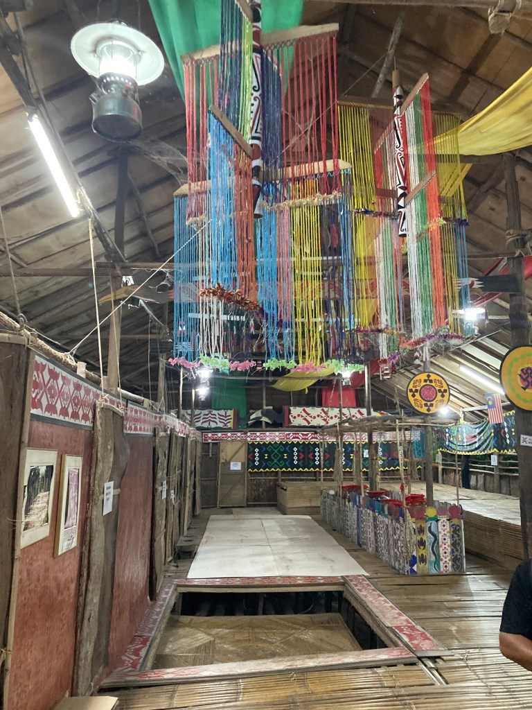 Next to the museum, there are traditional houses (longhouses) belonging to the local indigenous people that visitors can enter and explore. Inside, there are also selling traditional handmade crafts. One particularly unique aspect is the presence of their traditional game, Langsaran.