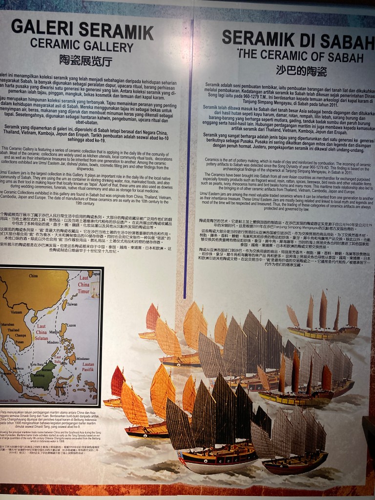 The complex encompasses not just the museum itself but also features an ethnobotanic garden, and a heritage village. The primary structure also serves as the home for the Sabah Art Gallery. Various galleries within the complex focus on Islamic civilization, archaeology and history, natural history, as well as ceramics and brassware. The museum’s mission is to gather, safeguard, protect, and document ethnographic, archaeological, historical, numismatic, art-historical, botanical, zoological, and mineralogical collections from across the state. Additionally, it aims to conduct research on significant and intriguing aspects of Sabah’s history, culture, and both social and natural history