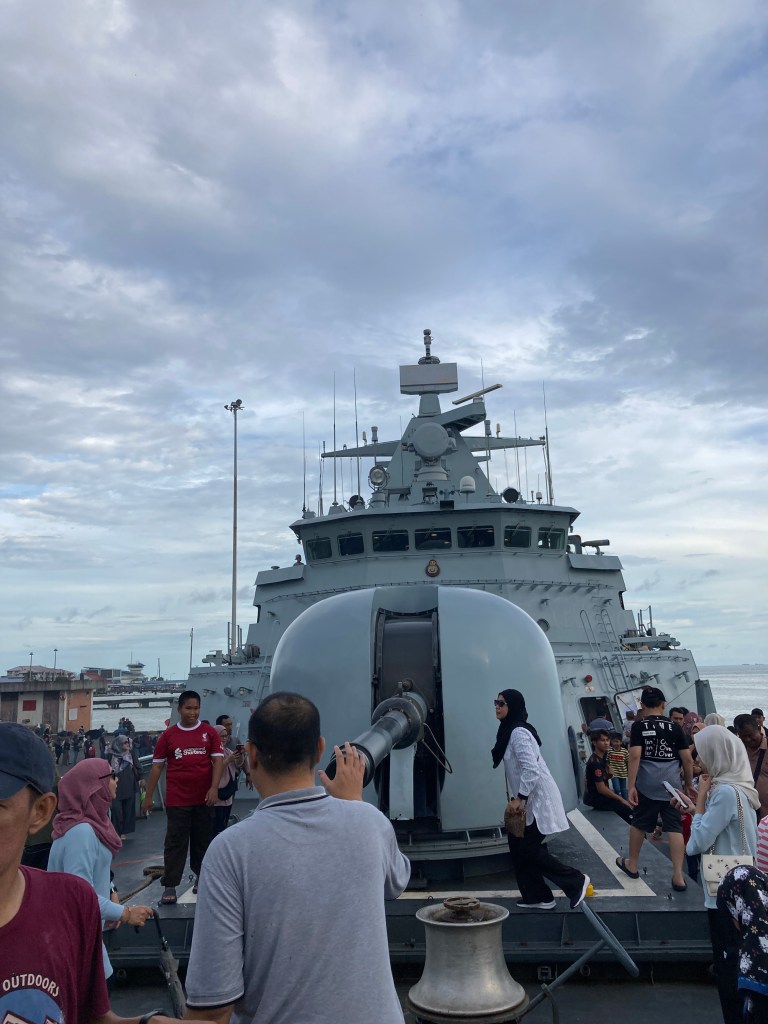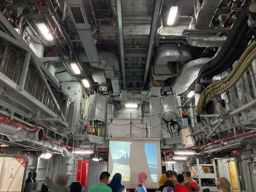 A lot of people, and it’s very difficult to find parking spaces. Expect to wait for about an hour before being able to go inside the ship for the tour.