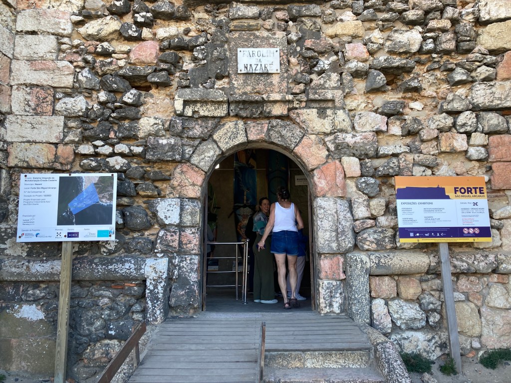 The Nazaré Lighthouse is situated within the Fort of São Miguel Arcanjo in Nazaré, within the West region of Portugal.