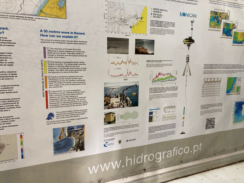 The beach seamlessly melds into the urban landscape, flanked by waterfront houses and adorned with traditional canvas tents boasting vibrant stripes of color. Caressed by the typically rough sea with powerful waves, Nazaré is a haven for surfing and bodyboarding enthusiasts.